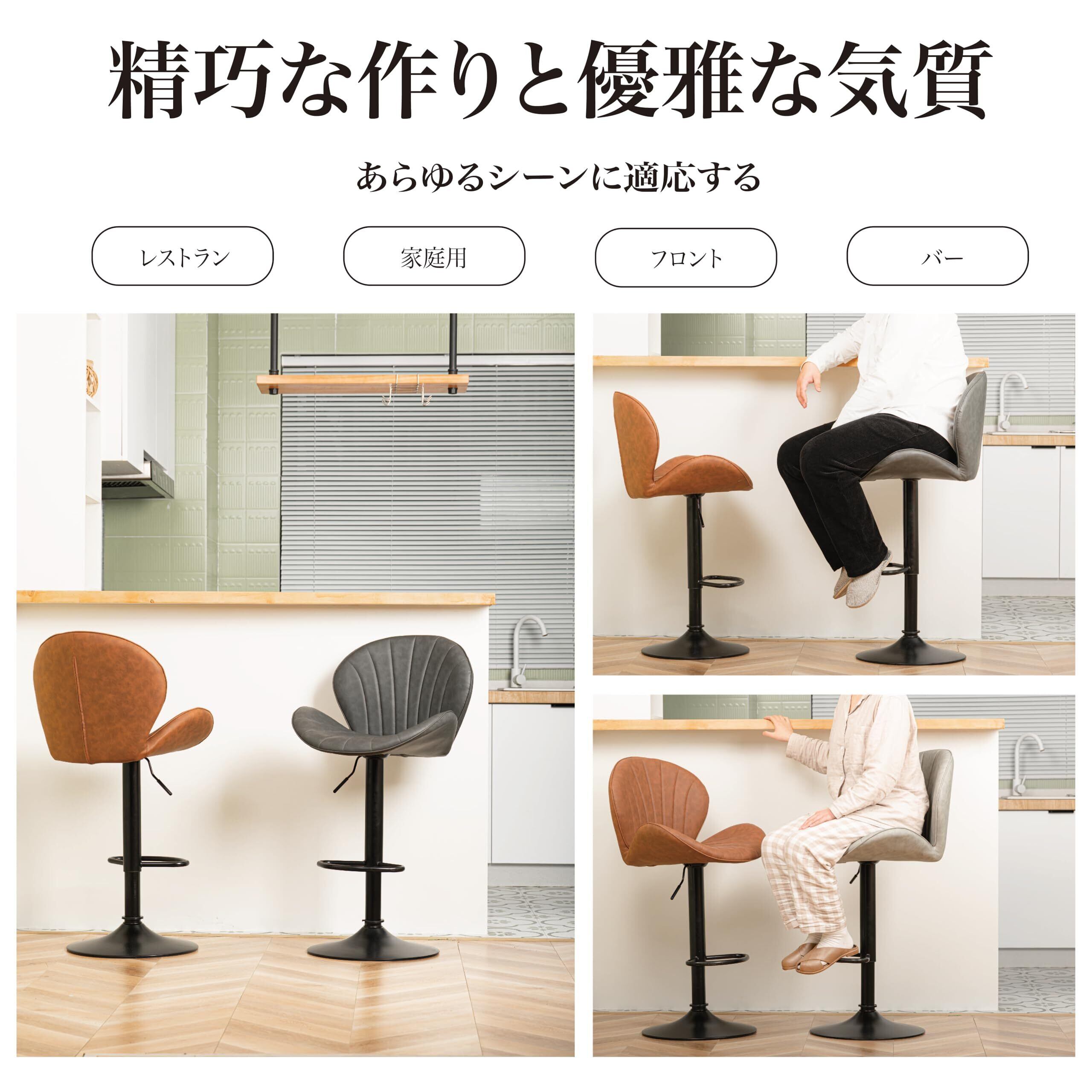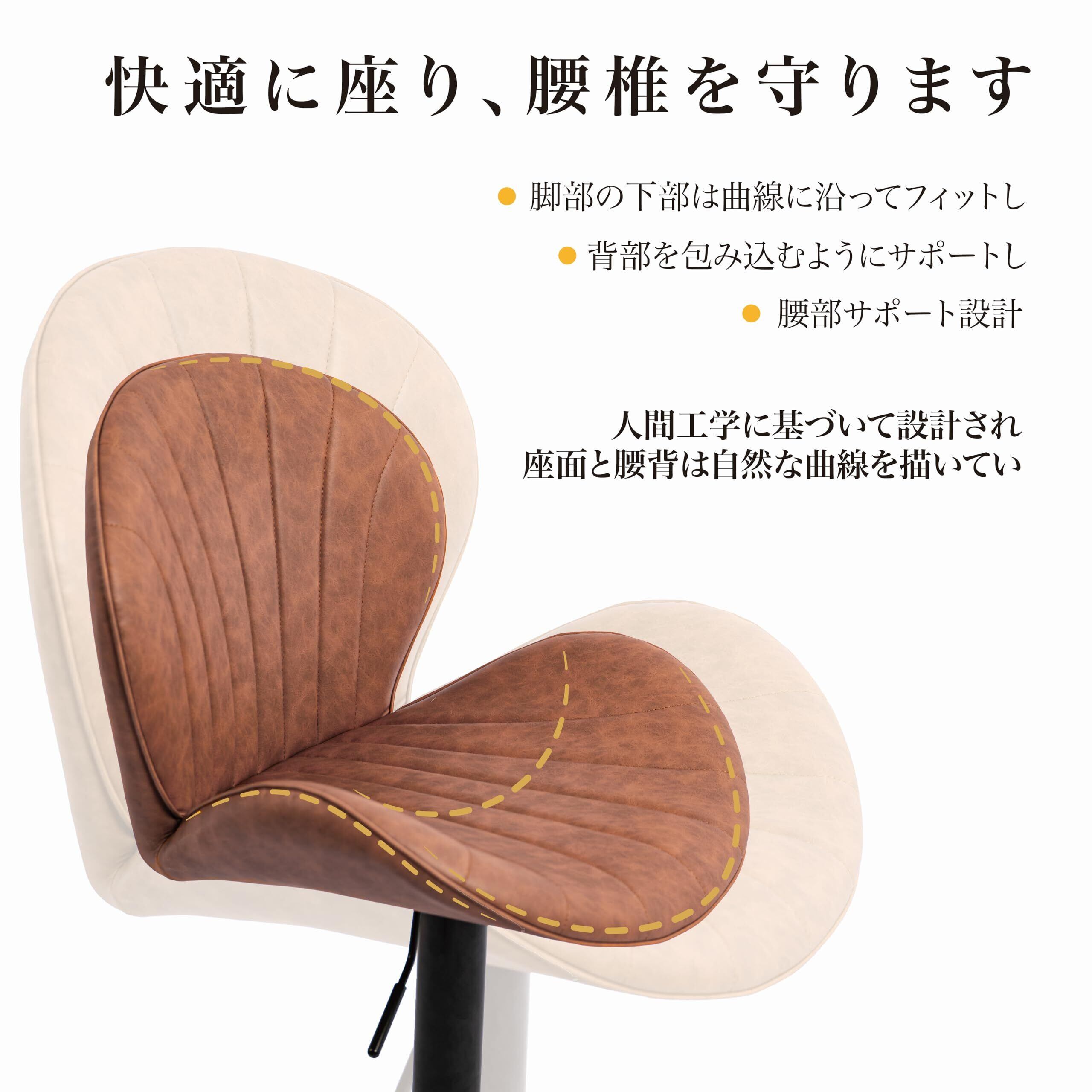 高さ調節可能:ガス昇降機能を搭載しており、座面の高さを簡単に調整できます。さまざまなカウンターテーブルや使用シーンに対応します。