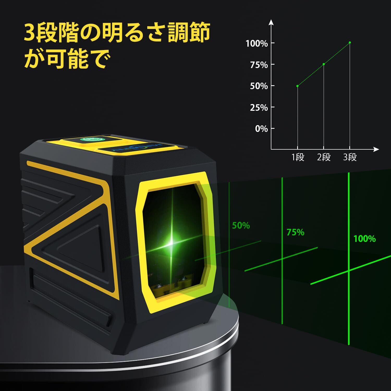 3. 3 段階の明るさ調節:レーザー墨出し器 Janmifly LL2G は 3 段階の明るさ調節機能を備えており、使用シーンに合わせて明るさを選ぶことができます。