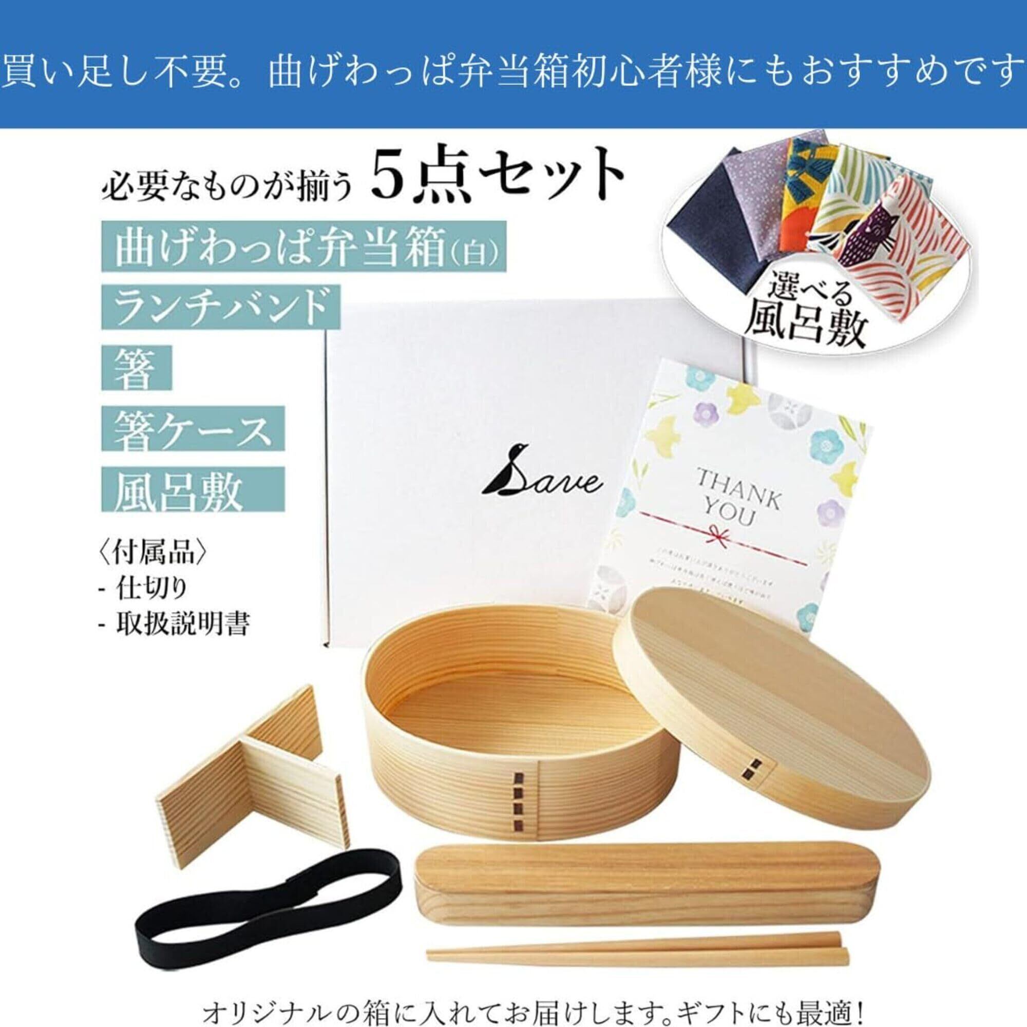 【SGS認証工場製造】 Save 曲げわっぱ 弁当箱 700ml 白 日本製風呂敷 フルセット ねこととり(ピンク)