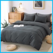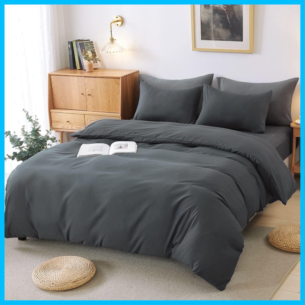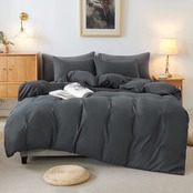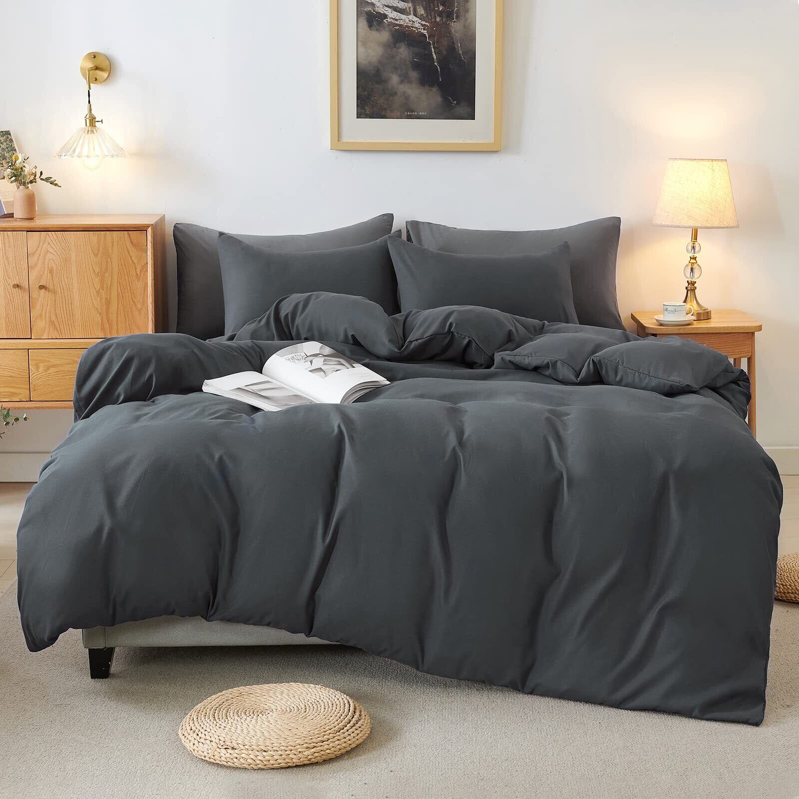 HOdo Home 布団カバー ダブル 4点セット 掛け布団カバー ベッドシーツ ベッドカバー ボックスシーツ 枕カバー 寝具カバーセット 洋式・和式兼用 洗い替え 速乾タイプ ピーチスキン加工 (ダークグレー ダブル) | Lulu