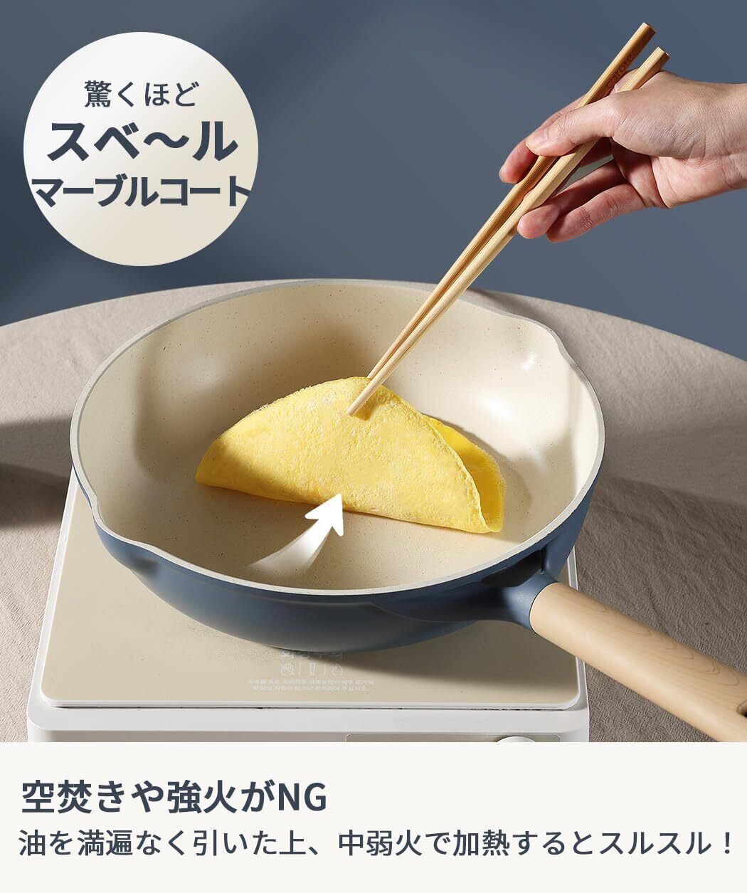 【快適な調理体験】内面がマーブルコートをしているため、焦げ付きにくくスムーズに調理できます。調理後もスポンジで軽く拭くだけで、汚れもスルッと落ちます