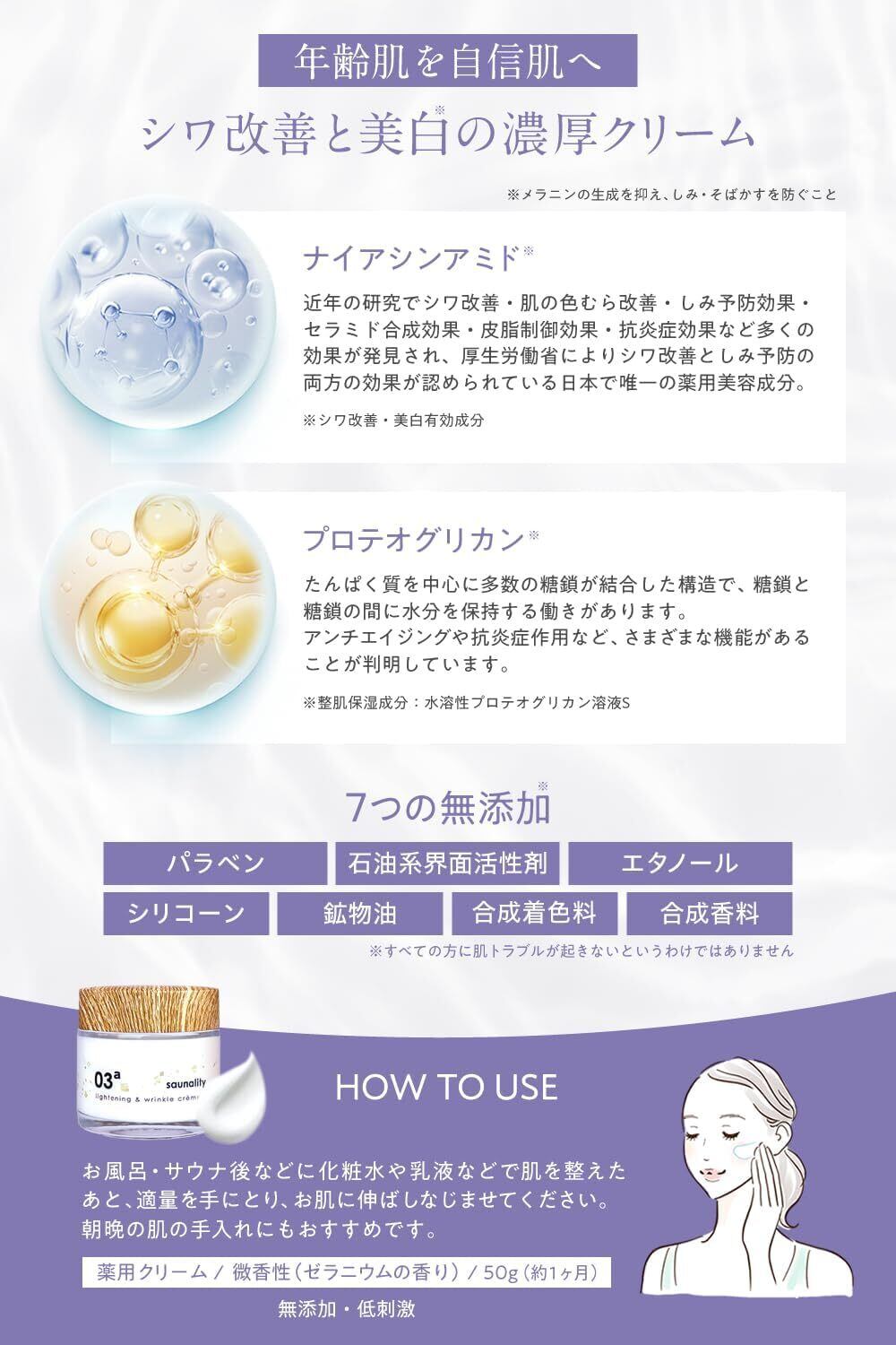 【薬用シワシミ】サウナリティ 03a ライトニング&リンクルクリーム 50g 医薬部外品 有効濃度ナイアシンアミド プロテオグリカン配合 シワ シミ エイジングケア 年齢肌
