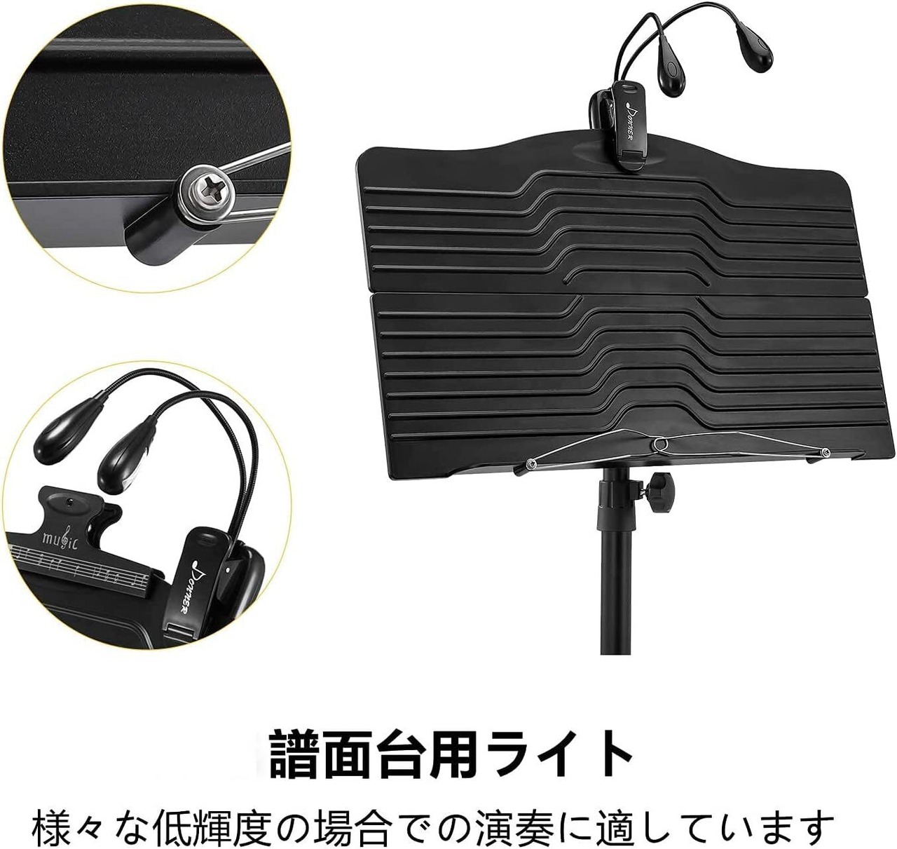 【内容物】DMS-1譜面台、譜面台用ライト、USBケーブル(ライト用)、黒い収納ケース、楽譜クリップ