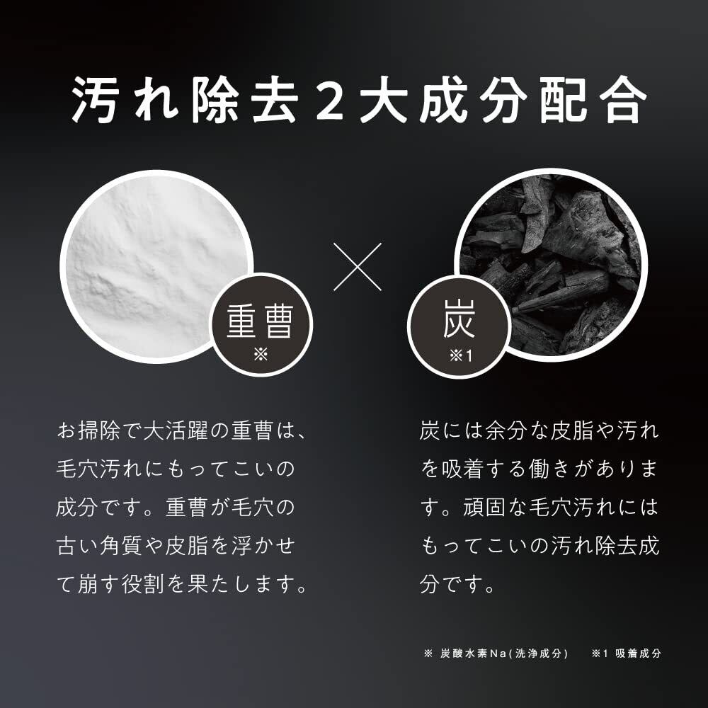 重曹、炭、パパイン酵素のトリプル成分で詰まった皮脂汚れを浮かせて落とす。