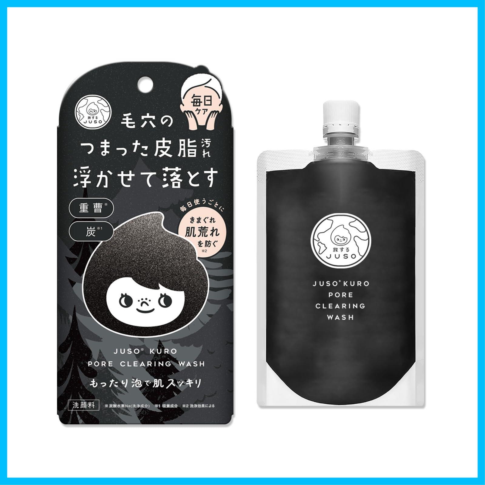 JUSO KURO PORE CLEARING WASH 100g重曹黒ウォッシュ 洗顔 濃密泡 重曹 炭 酵素 毛穴 皮脂 角質 角栓 小鼻 黒ずみ くすみ