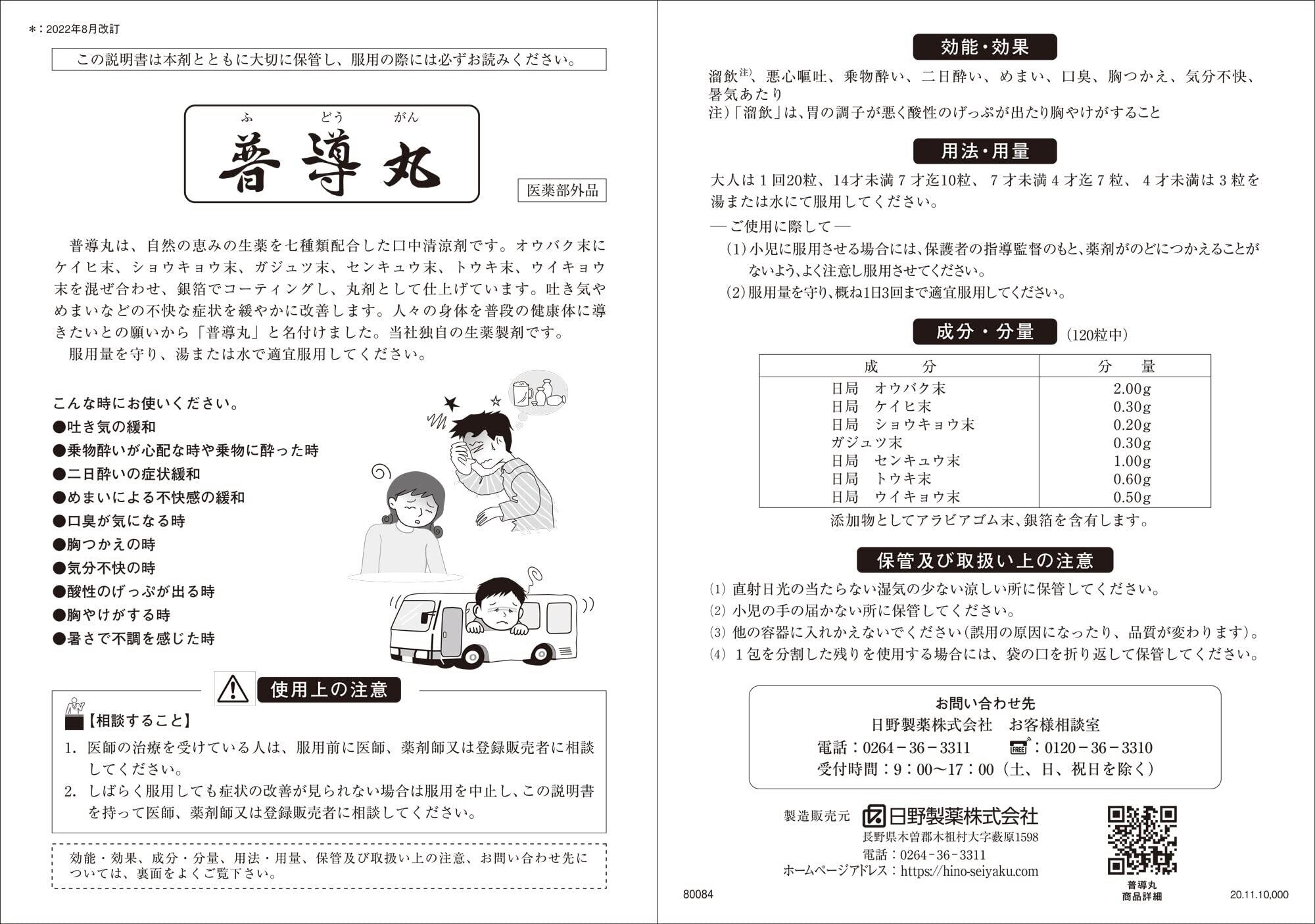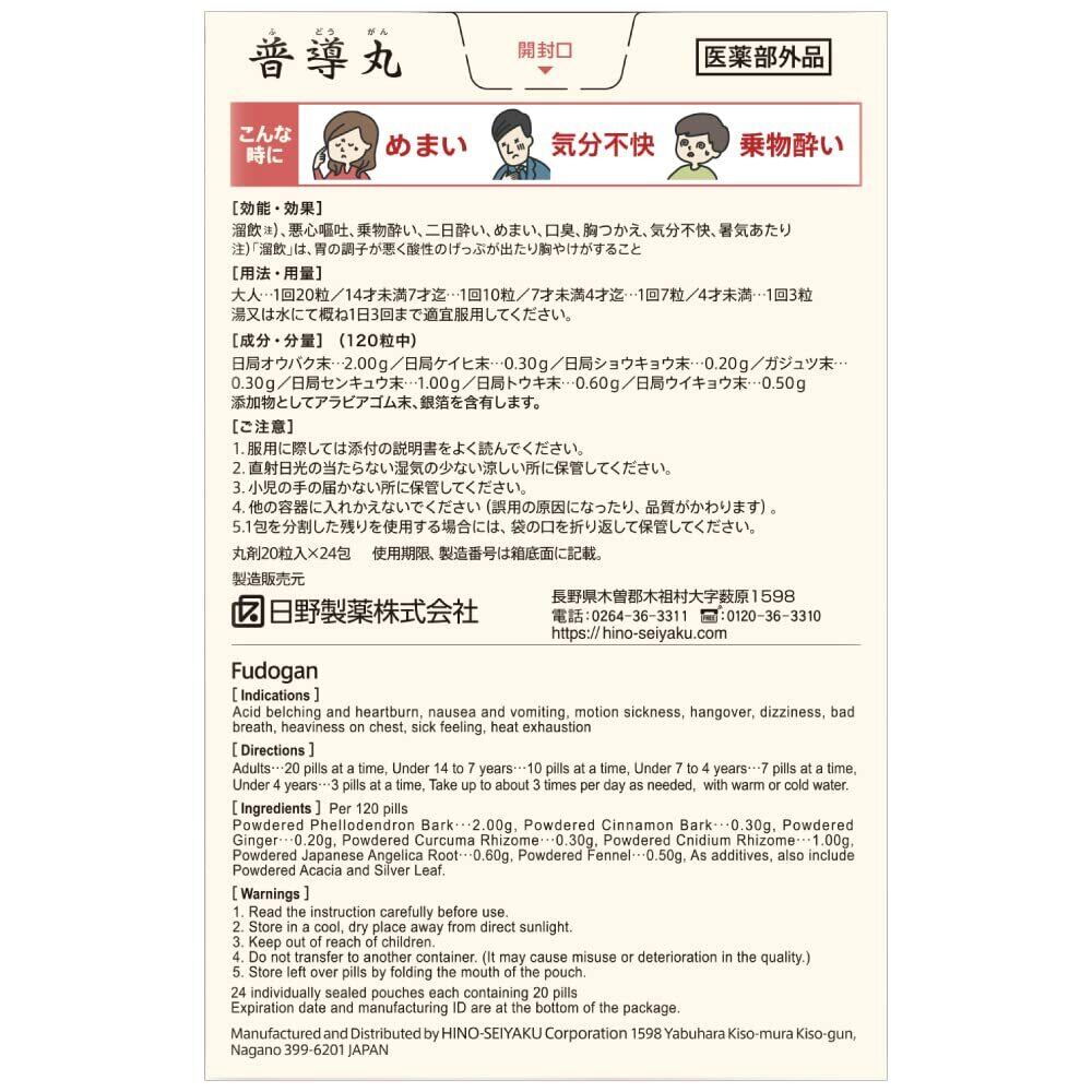 日野製薬【普導丸 ふどうがん】 24包入 めまい 二日酔い 乗物酔い 吐き気 口臭 気分不快に 七種類の生薬配合 (医薬部外品)