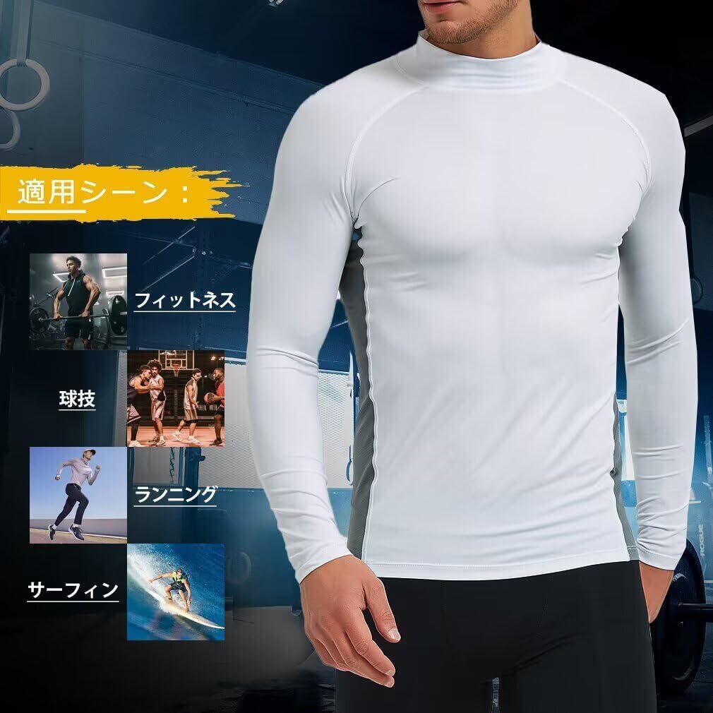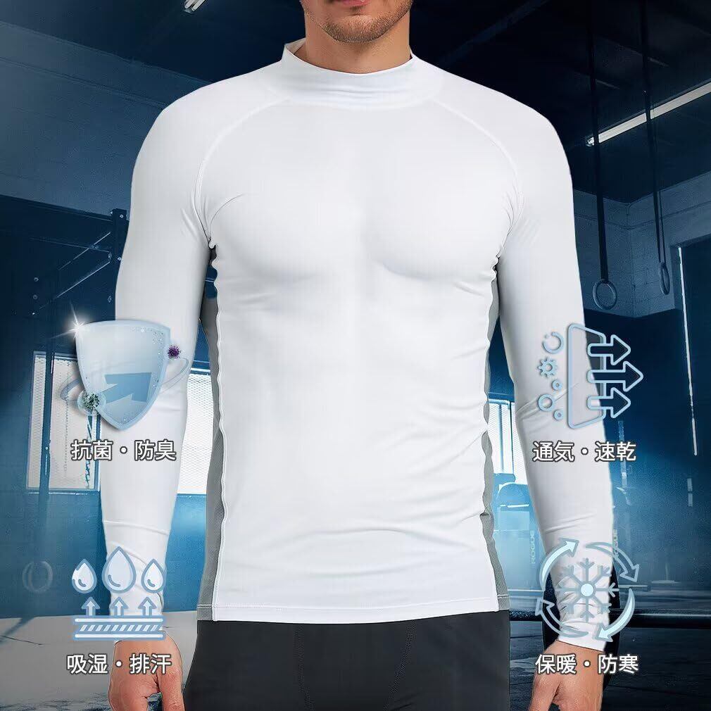 [Sillictor] 夏用インナー 長袖 ハイネック メンズ コンプレッションウェア トップス [接触冷感 吸汗速乾 消臭 コンプレッション UVカット]