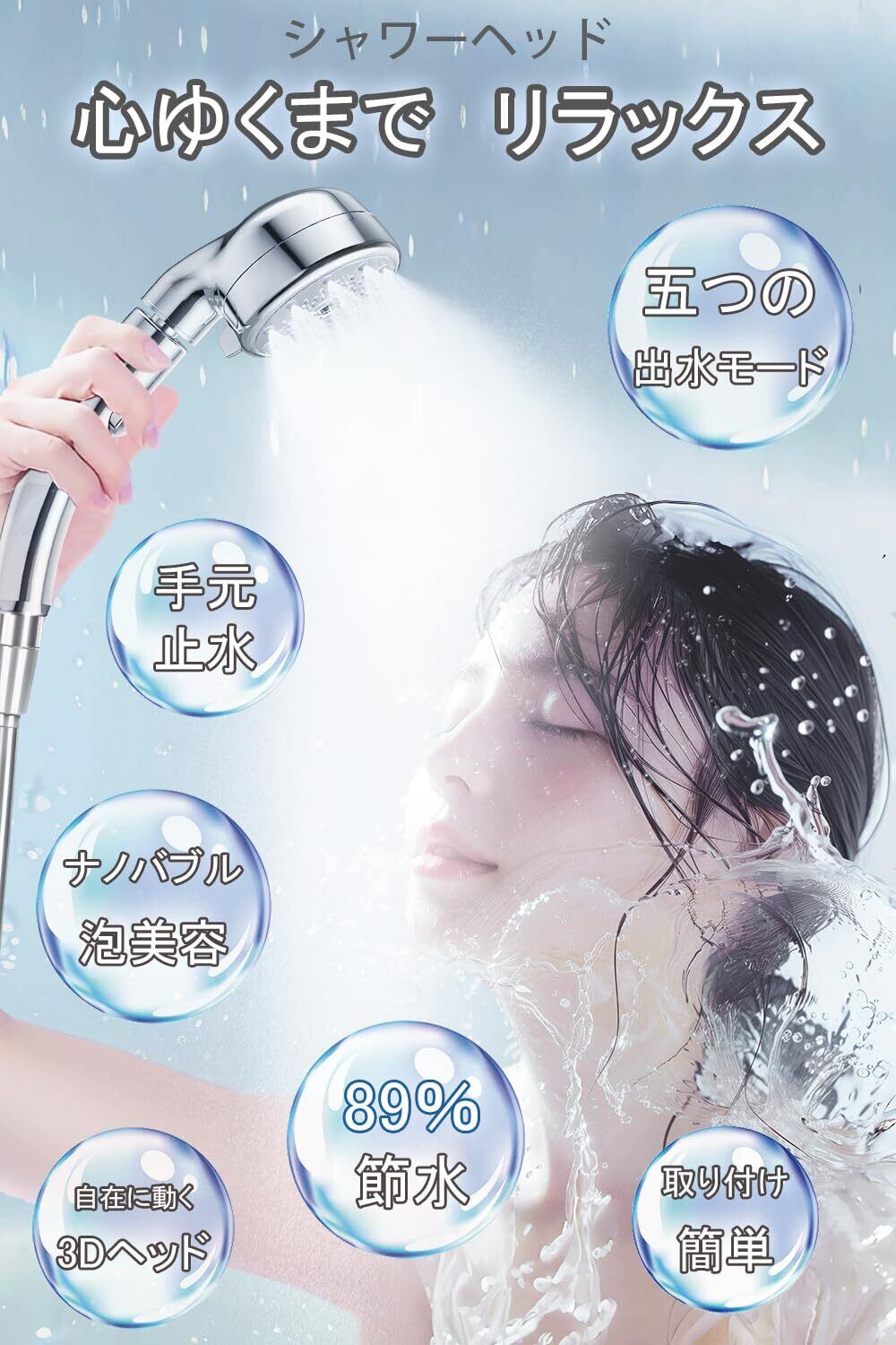 シャワーヘッド マイクロナノバブル ミスト シャワー 【2025革新・89%節水】 節水シャワーヘッド 高水圧 360°角度調整 & 上下60度の回転 3Dプレミアム 手元止水 高洗浄力 5段階水流 美髪 肌ケア 毛穴汚れ除去 シャワーヘッド 節水 保温 保湿 国際汎用基準G1/2 M/K/G/T 4種類アダプター付き 軽量 取付簡単 | Lulu