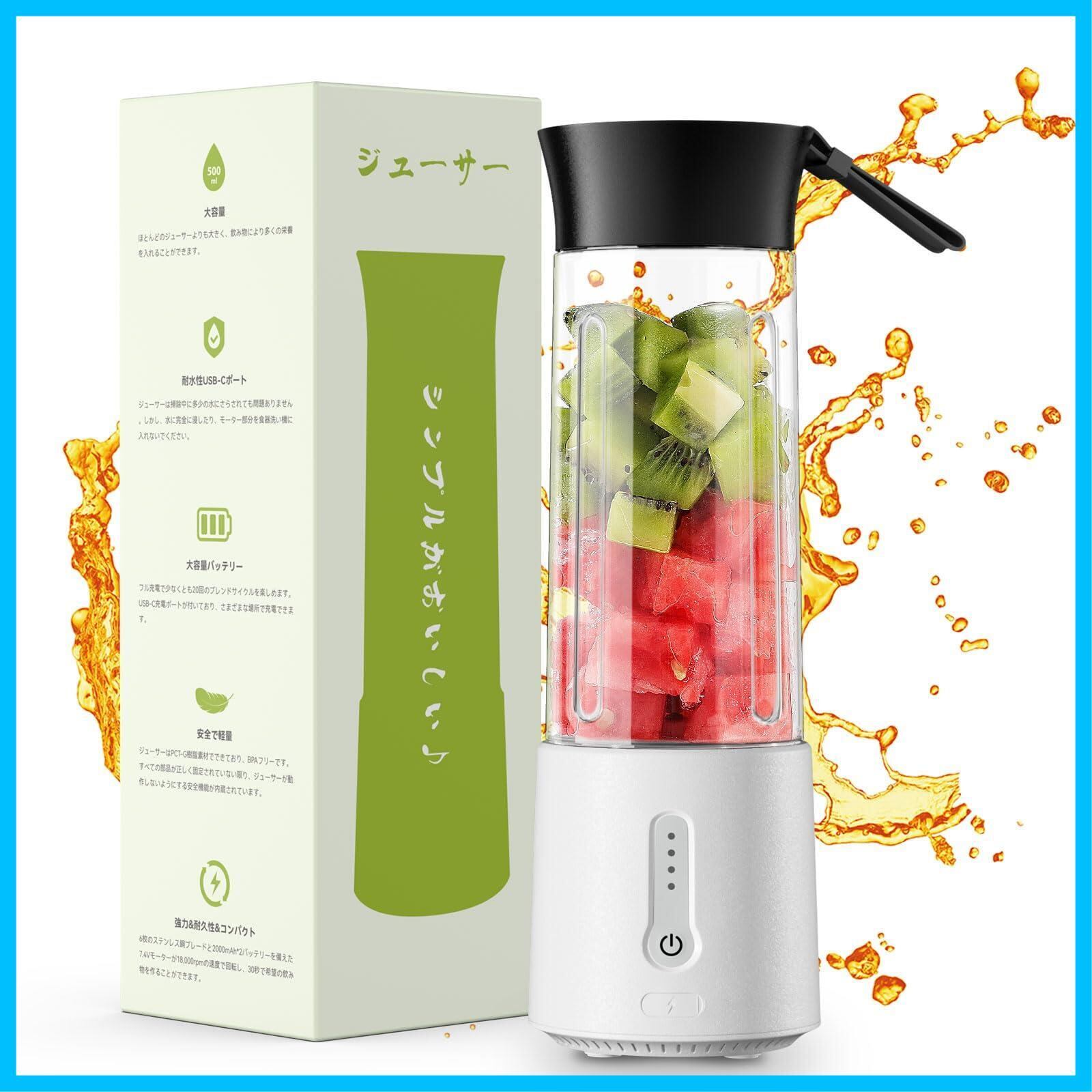 Besecou ミキサー ジューサー 氷も砕ける 【米国PCT-G素材+304ステンレス】ジュース 500ml 野菜 果物 ハンドミキサー フルーツ スムージー ブレンダー 離乳食用 栄養補充 お手入れ簡単 防水 4000mAh USB充電式 コードレス 小型 コンパクト軽量 持ち運び 誤操作防止 アウトドア キャンプ オフィス ダイエット 日本語取扱説明書 ホワイト