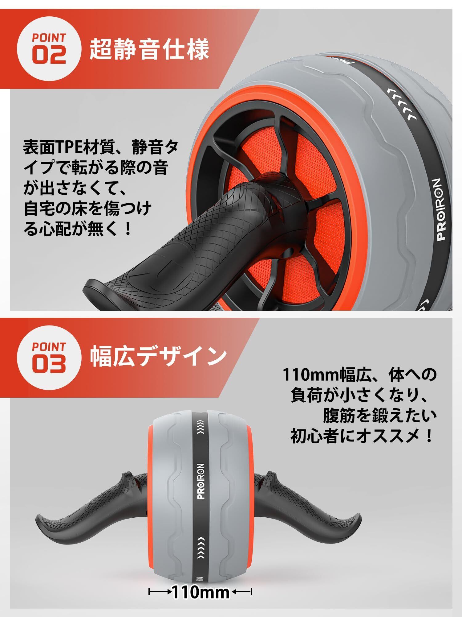 PROIRON アブローラーアシスト付き 腹筋ローラー 初心者 エクササイズローラー 組み立て 静音 耐荷重150kg