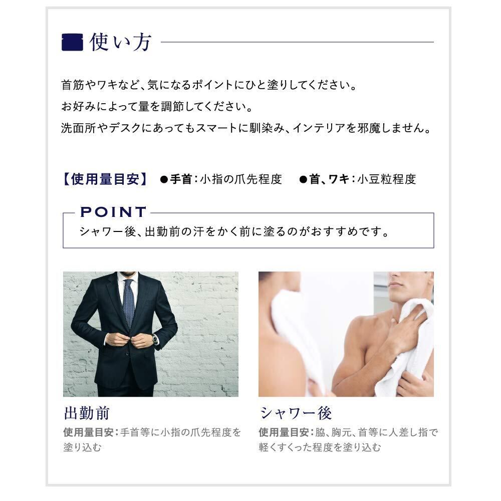 【使い方】出勤前やシャワー後など汗をかく前に塗るのがおすすめです。首筋やワキなど、気になるポイントにひと塗りしてください。お好みによって量を調節してください。