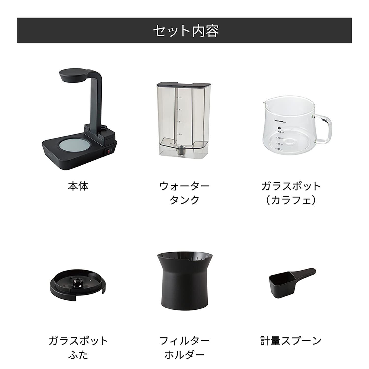 recolte レコルト レインドリップコーヒーメーカー ドリップ式 ドリップコーヒーマシン 約480ml 約4杯用 ハンドドリップも楽しめる2Way パーツを外して洗える オートオフ 自動保温 ブラック RDC-1(BK) | Lulu