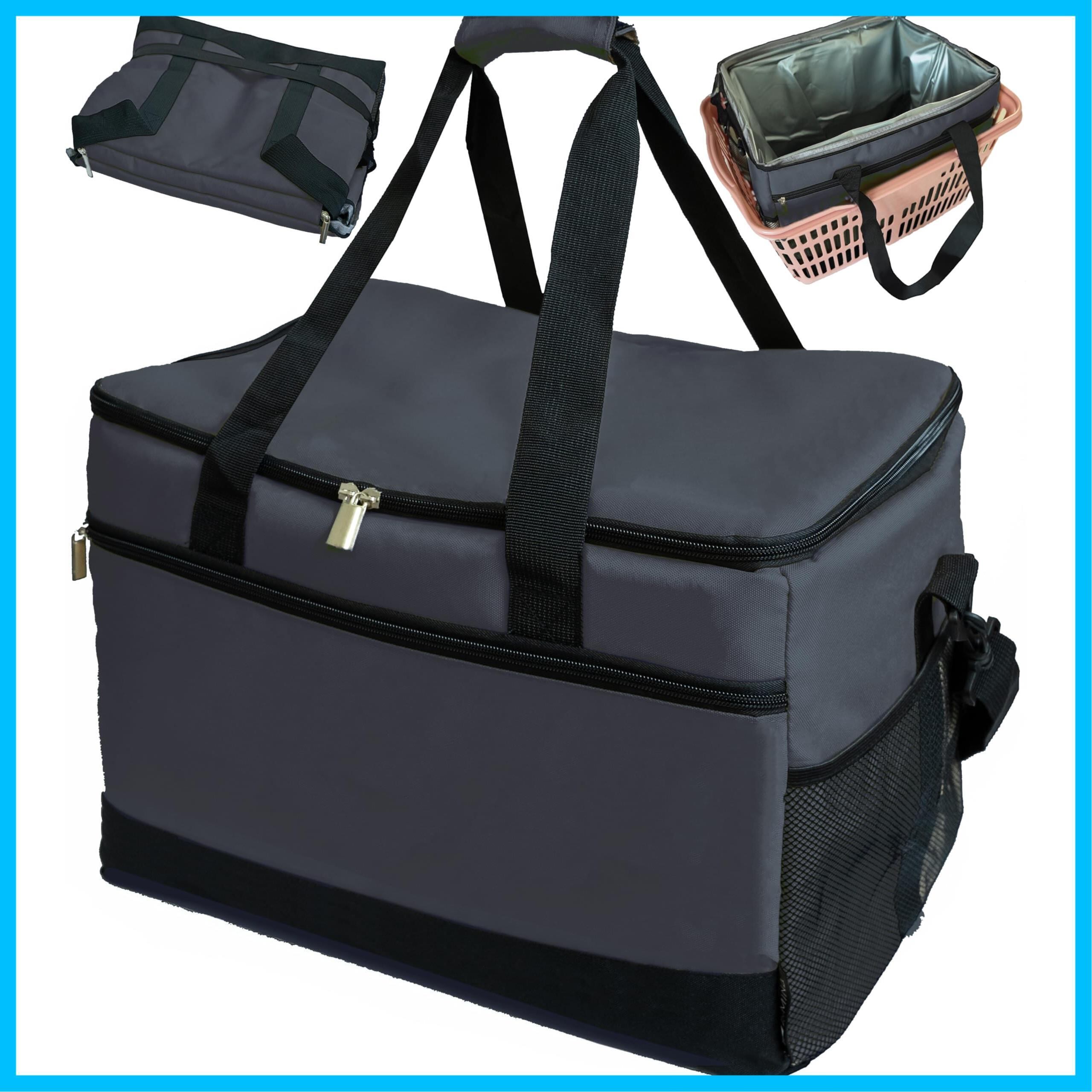 ◆超大容量、でもコンパクトに収納/このクーラーバッグは、35Lの大容量にもかかわらず、コンパクトに収納できる優れもの。レジカゴサイズで、お肉のパックや2リットルのペットボトルもラクラク収納可能です。特にゴムベルトを使えば、使わない時には簡単に折りたたんでコンパクトに収納できる点が魅力的です。Wファスナー付きで荷物の出し入れがしやすく、また、防水設計が施されているため、冷たい飲み物や氷を入れても水漏れの心配がありません。こうした多機能性と使い勝手の良さが、日常のお買い物やレジャーを一層便利にしてくれます。