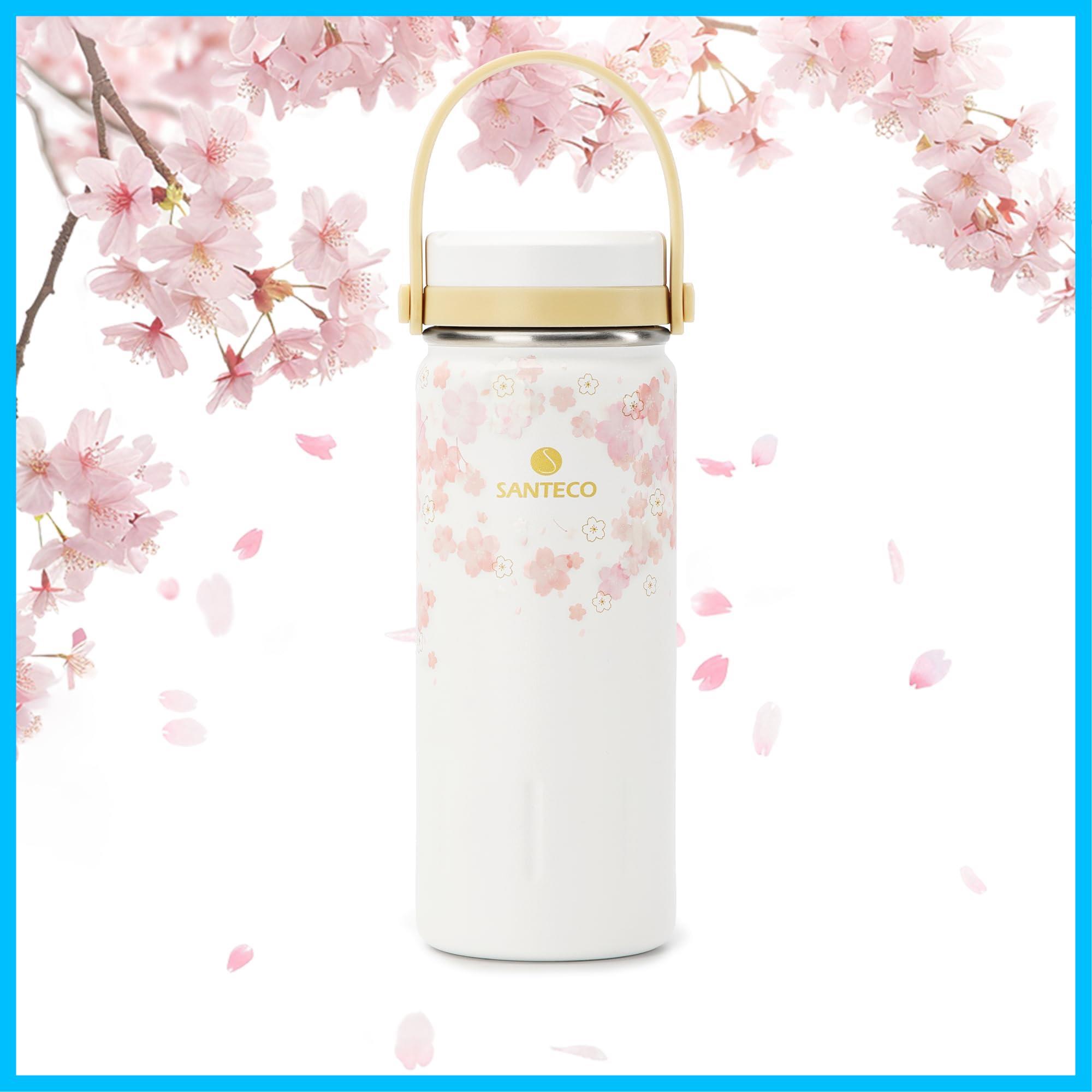 SANTECO トラベルタンブラー 380ml ハンドルタイプ 保冷 保温 真空二重構造 ステンレス 直飲み 洗いやすい 桜の季節限定 (桜)