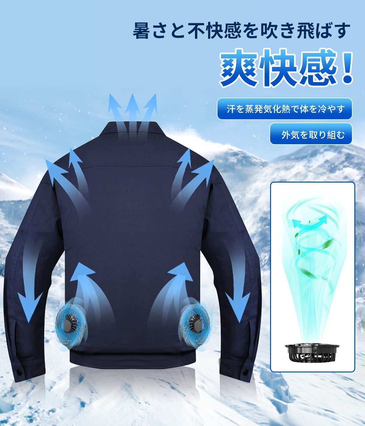 【2024新発売&空調作業服 ファンとバッテリーセット】パッケージ内容:空調作業服*1、バッテリー*1、フアン*2、接続ケーブル*1、バッテリーへ充電用ケーブル*1。(本製品には30000mAh大容量モバイルバッテリーが含まれております。)ダブルファスナー仕様で、普通のサイズより自由変換でき、MサイズはS/M、LサイズはL/2XL、3XLサイズは2XL/3XL、4XLサイズは4XL/5XLに対応しています。色:グレーとネイビー2つの色から選択できます。 または、作業服のファンは3枚の大面積羽根を採用して、風がより強くなるので快適に過ごせます。作業服ファンがウェアから突起することがないフラット型ので、作業中の動作を防げず、快適な作業を実現しました。