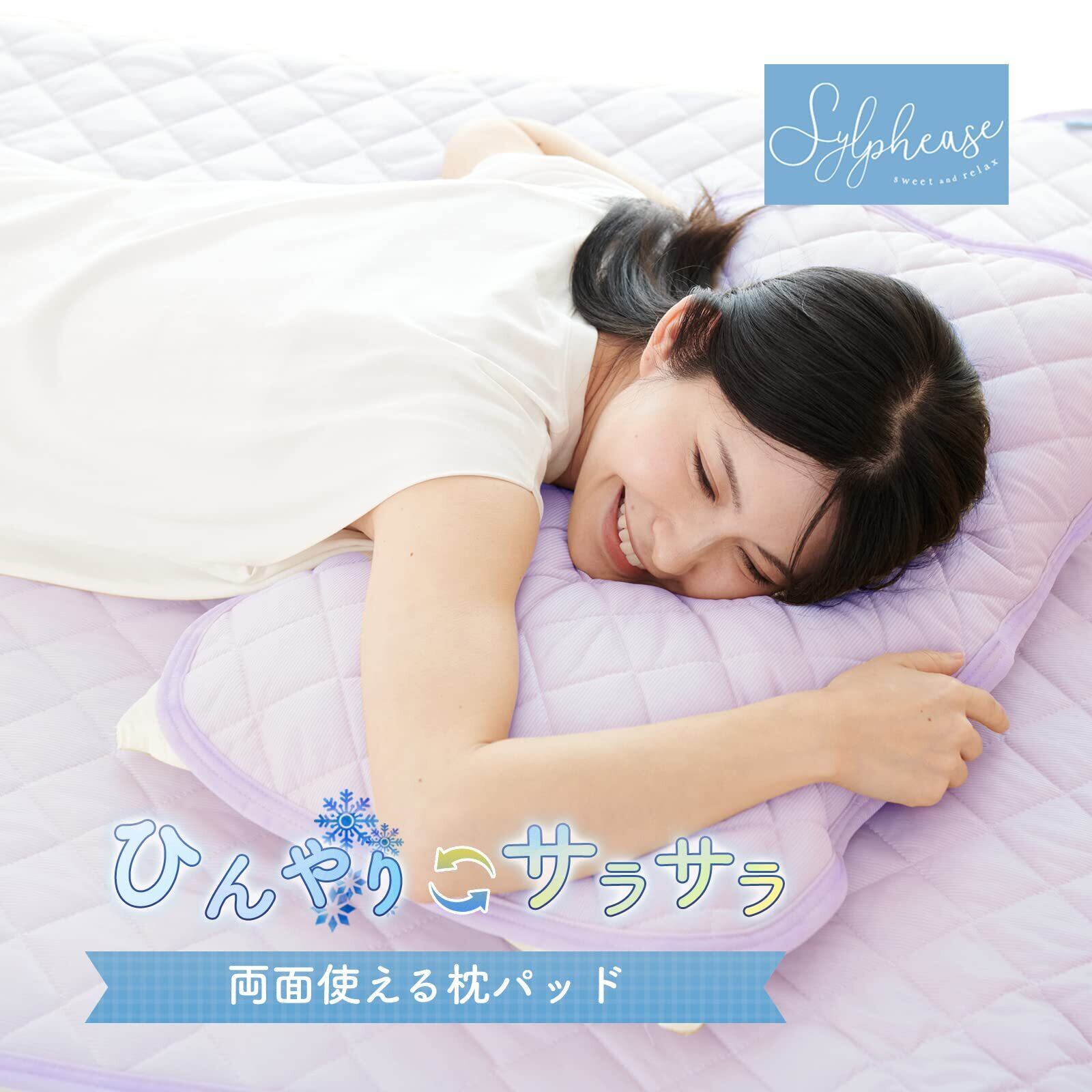 シルフィーズ 枕パッド 冷感 2枚セット リバーシブル 接触冷感 洗える 吸湿速乾 オールシーズン 快眠 涼感 パープル