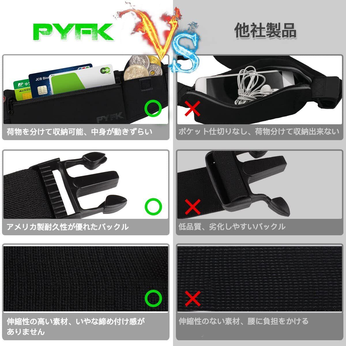 PYFK ランニングポーチ 軽量 防水 揺れない ウエストポーチ iPhone スマホ対応 ランニング ポーチ 薄型 おしゃれ メンズ レディース