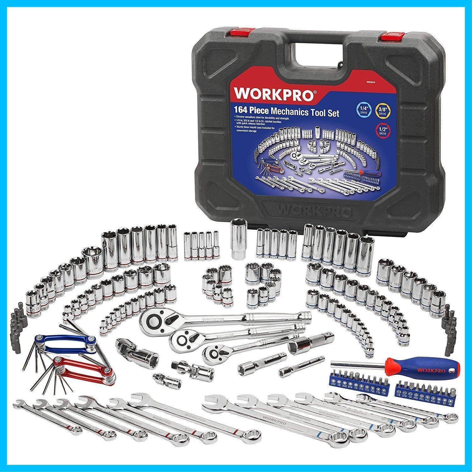 WORKPRO ソケットレンチセット インチ工具セット ハーレー ラチェットレンチ 自動車 バイク 整備 メンテナンス 164点組