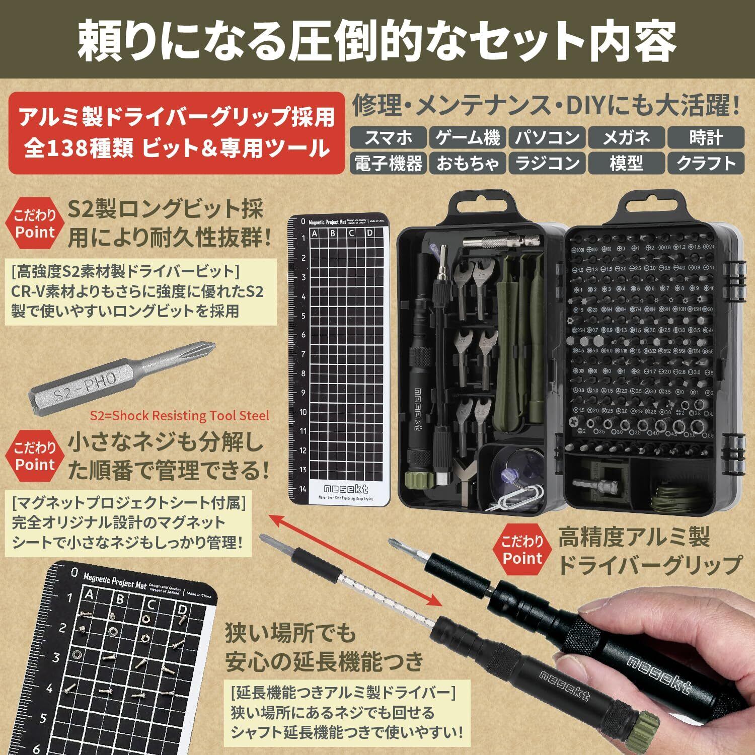 [ネセクト] 精密ドライバーセット 138in1 アルミグリップ仕様 高強度S2ビット トルクス 六角 ポジドライブ スマホ修理 DIY [日本国内企画品]