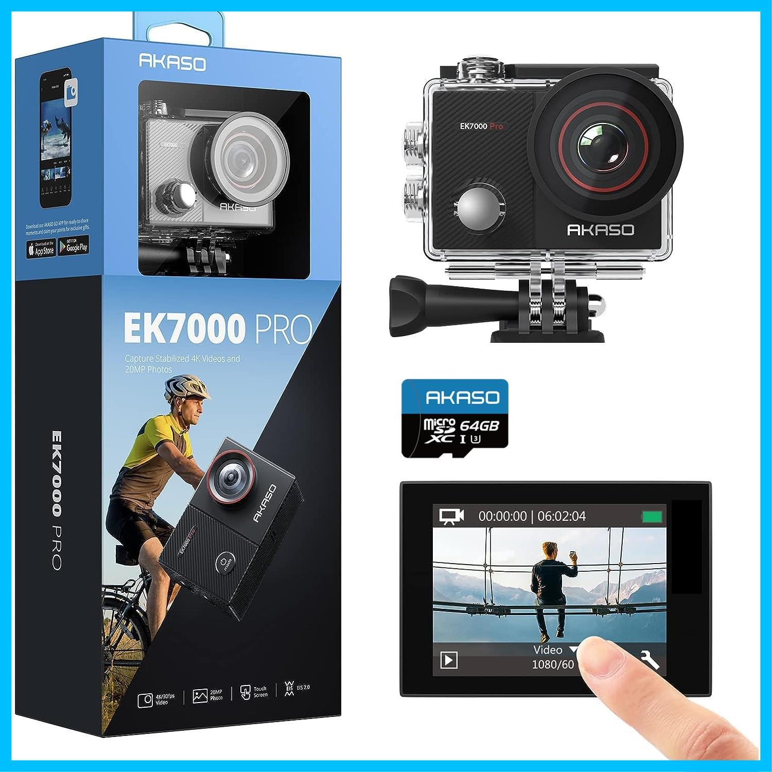 AKASO EK7000 Pro 4K アクションカメラ + 64GBメモリカード 2000万画素 タッチパネル式 Type-C外部マイク対応 手ブレ補正 WIFI搭載 広角レンズ 40m防水 水中カメラ HDMI出力 スポーツカメラ リモコン付き 2つ1350mAhバッテリー 豊富なアクセサリー ウェアラブルカメラ | Lulu