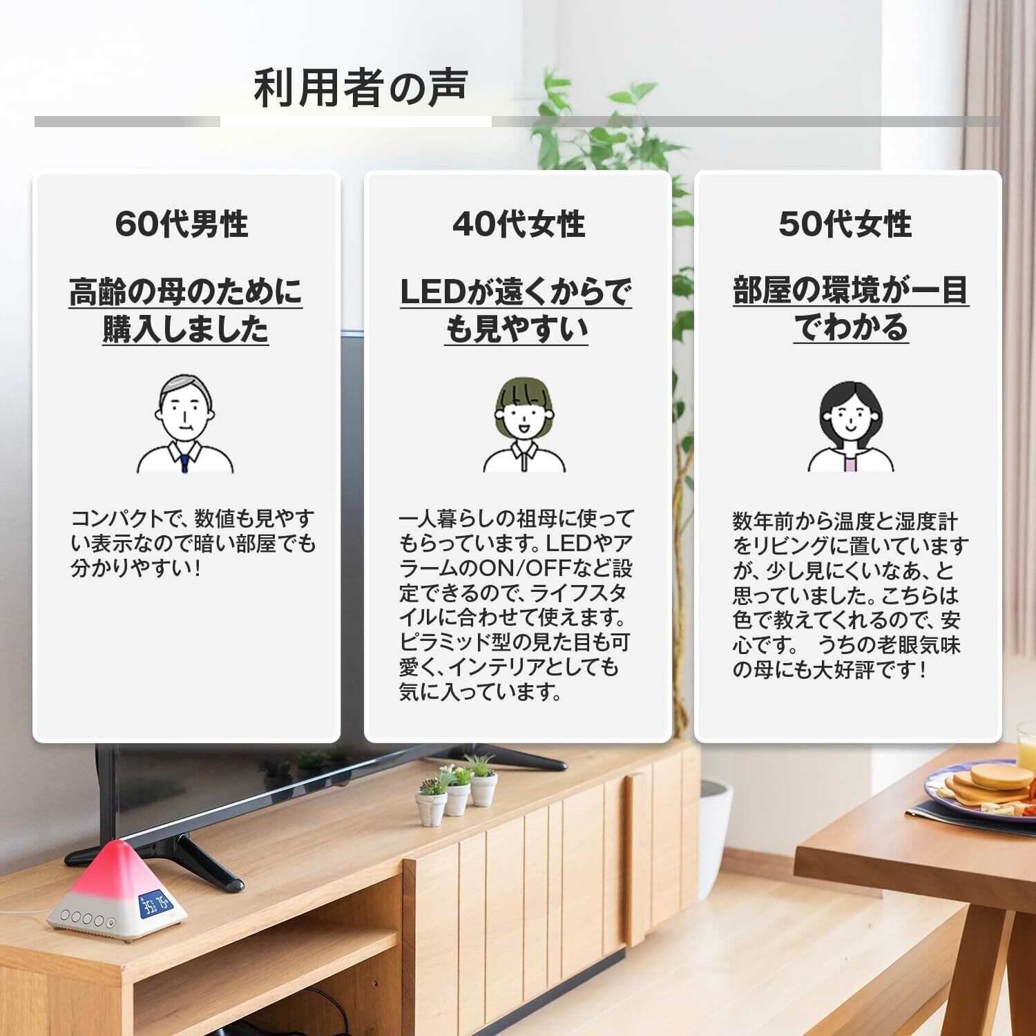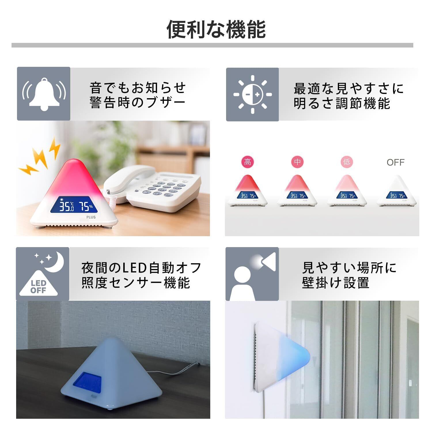 プラス 温度湿度計 猛暑 熱中症対策 温湿度LEDアラーム 色でお知らせ カラー通知 4段階警告 (夏・冬切替可能) AT-TH03 538162