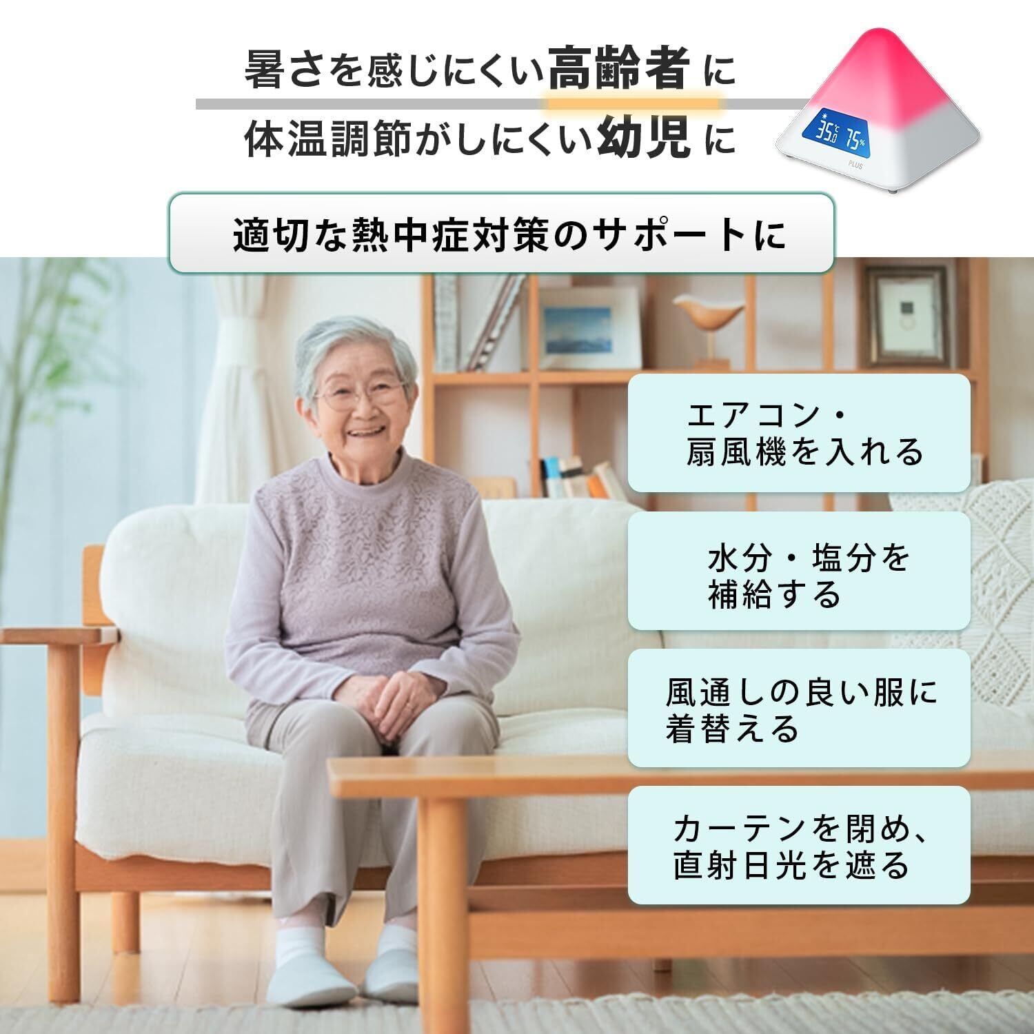 暑さ、乾燥のレベルをLEDの色で360度お知らせ。感覚に頼らない、適切な対策を!