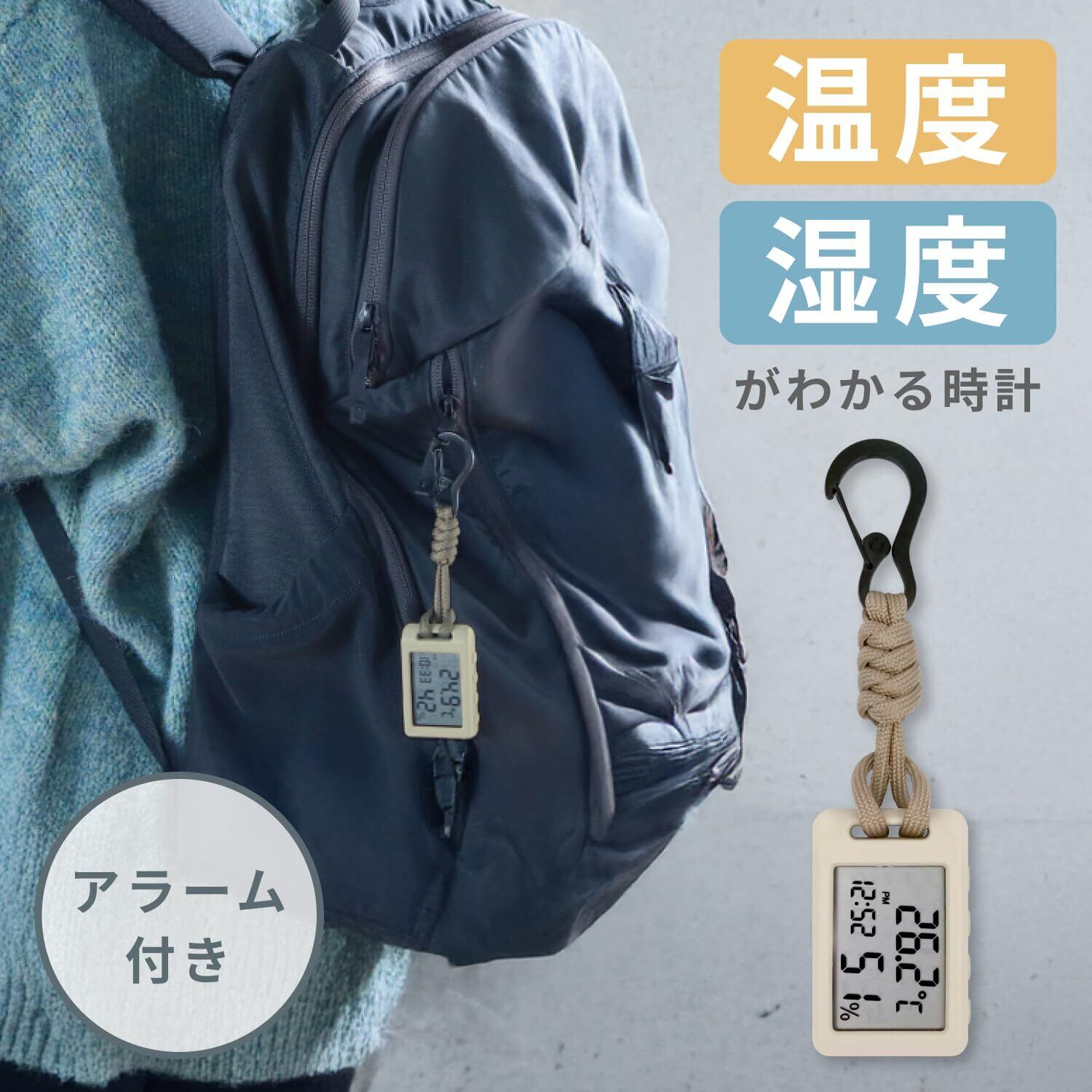 温湿度計 ポータブル温度計 湿度計 時計表示 熱中症対策 暑さ対策 熱中症計 インフルエンザ アラーム機能 温度 湿度 デジタル 小型 警戒 赤ちゃん ベビー 作業現場 ベビーカー リュック 登山 キャンプ 可愛い ベージュ