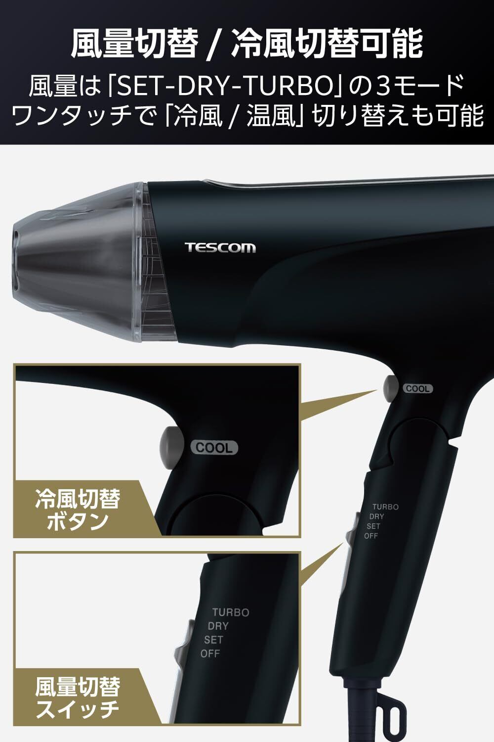 テスコム ヘアドライヤー プロテクトイオン 速乾 軽量 冷風 折りたたみ 大風量 大風圧 ラク抜きプラグ Speedom ブラック TEC-HD2400-K