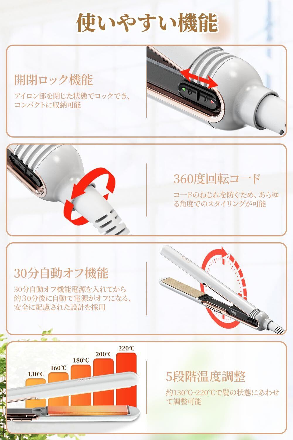【安全な温度ロック機能】設定温度に達すると、ブザーが鳴り温度がロックされます。誤操作を防ぎ、温度変更は+/-ボタンをダブルクリックで可能。再度温度に達すると、温度が再ロックされます。安心してスタイリングを楽しめます。
