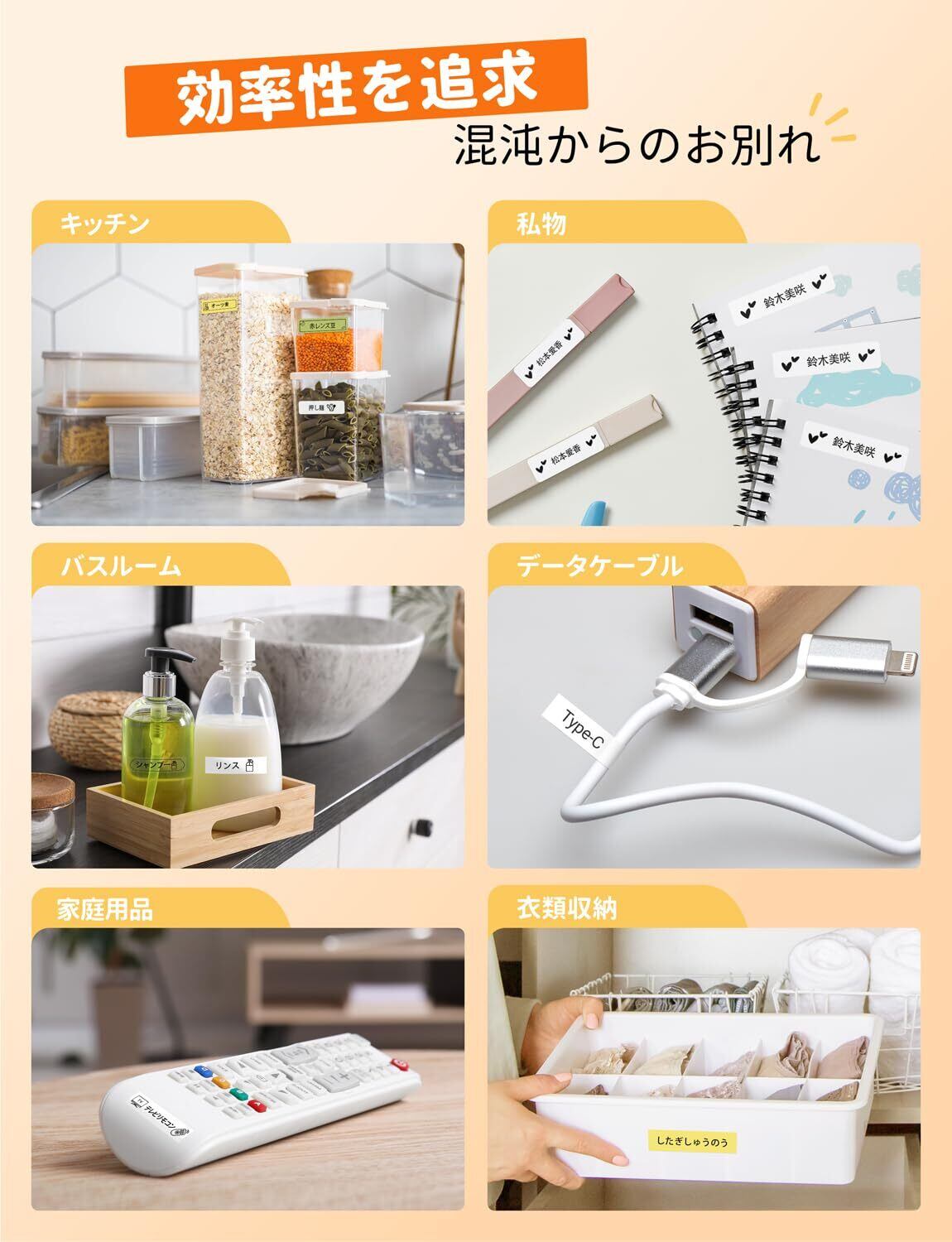 【多彩・面白いテープをご用意】蛍光カラー・メタリックテープ・透明テープ・カラーテープ等、20種類の素敵なテープをご用意して、専用アプリには60 以上の飾り枠、300 以上のステッカー、20 以上のフォント、いっぱいなシンボル及びQRコートなどテンプレートをご用意して、ラベル作りがもっと楽しくなる ※性能と安定性のをする為、必ず純正ラベル用紙をご使用して下さい