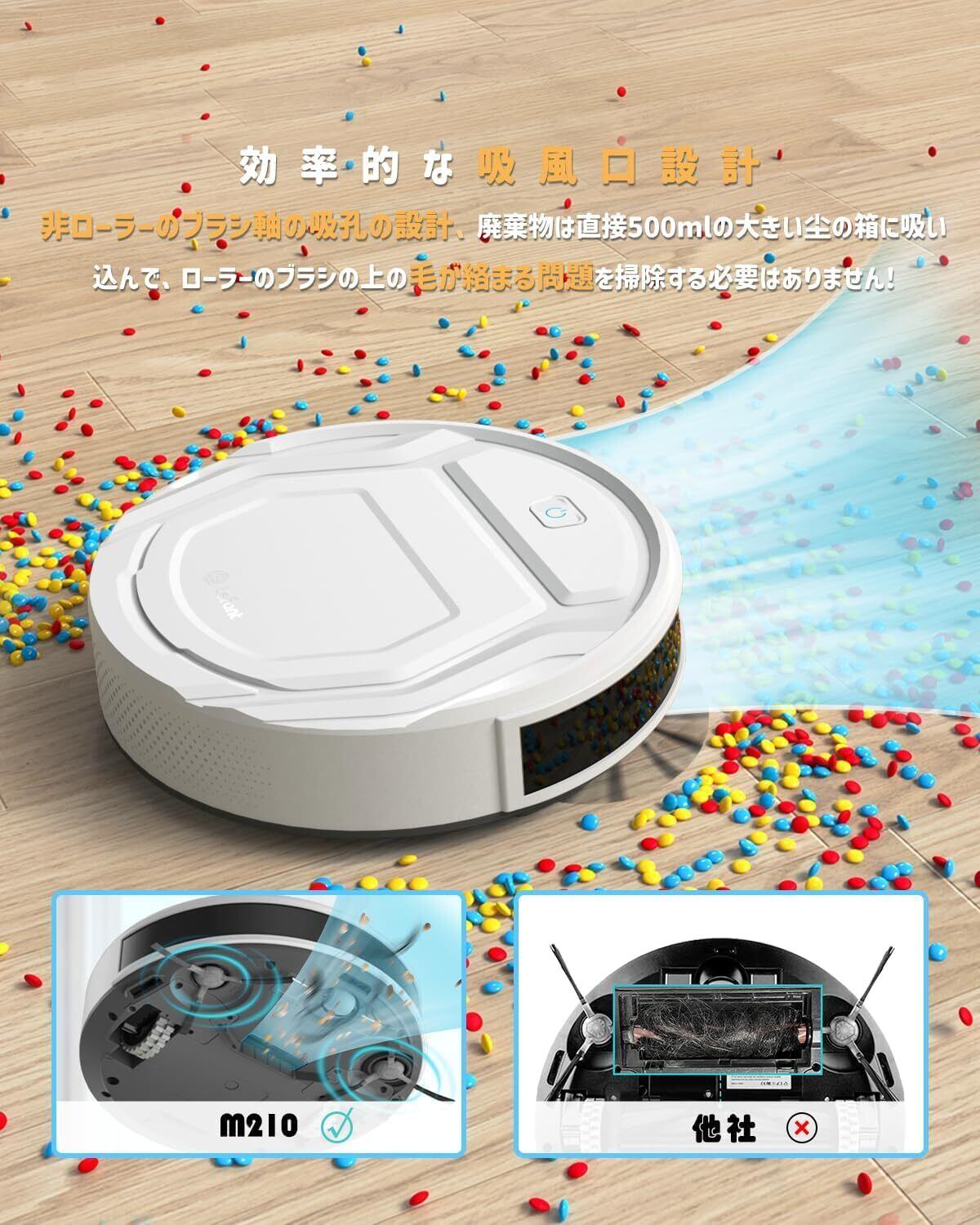 Lefant M210P ロボット掃除機「コンパクト設計 2200Pa強力吸引 120分連続稼働 |WiFi・アプリ・音声対応(Alexa/Google)・Apple Watch対応・カーペット加圧・段差防止・静音モード搭載 リモコン付属 ホワイト」