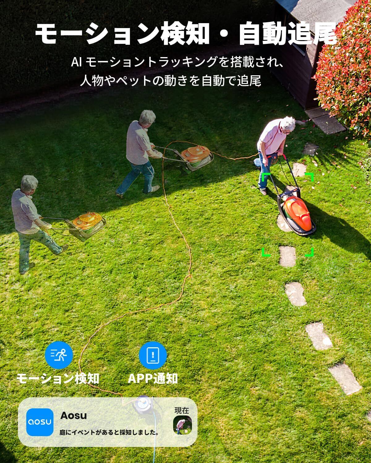 【2025最新500万画素・高効率充電・15灯夜間カラー】aosu 防犯カメラ 屋外 ソーラー 9200mAhバッテリー内蔵 電池式 屋外カメラ 人体/移動検知 自動追尾 360°PTZ回転 ソーラーカメラ 声光警報 双方向会話 家族共有 セキュリティカメラ 自宅/玄関/店舗/倉庫/駐車場 監視カメラ IP65防水 2.4GHzWiFiのみ対応 Alexa対応