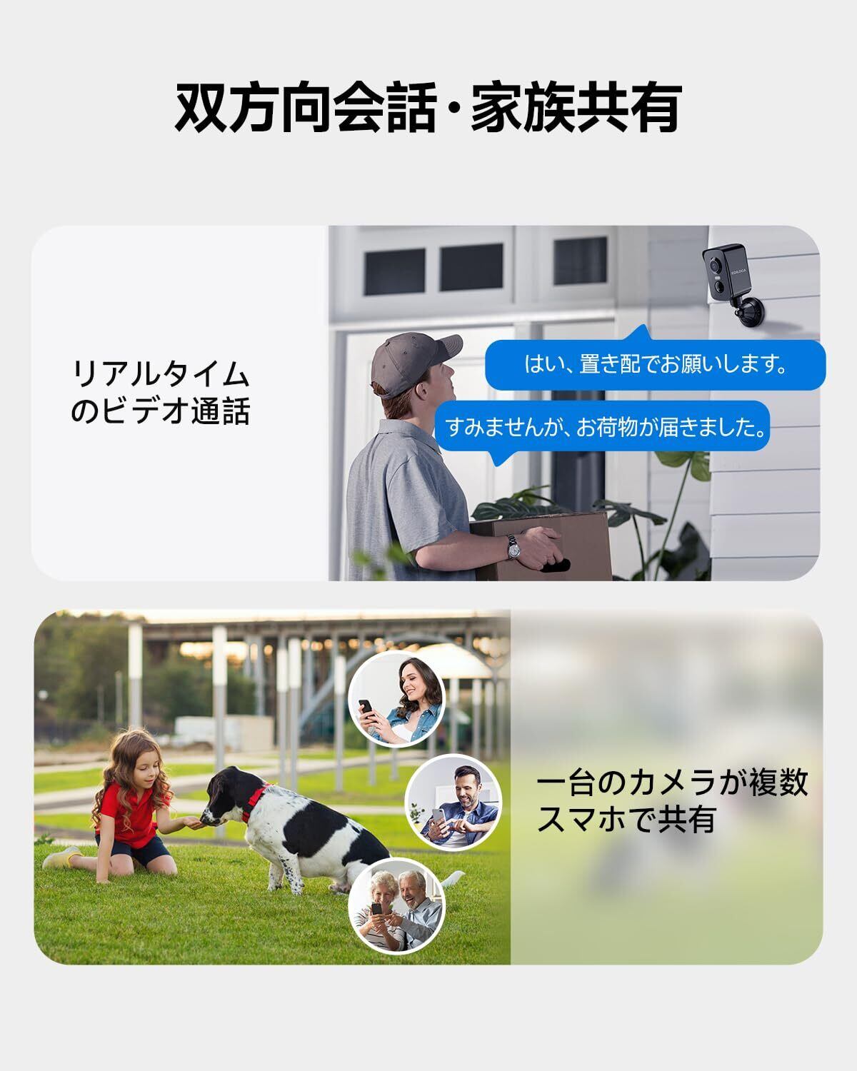 【強化されたAIインテリジェント分析・IP65防塵防水】強化されたAIインテリジェント分析をオンにすると、人、車両、ペット、荷物を明確に分析して識別し、ドア状況をより正確に把握できます(追加のサブスクリプションが必要)。さらに、このセキュリティカメラは全天候型の屋外環境向けに設計されており、IP65 の防水等級を備えているため、どんな天候でも動作します。