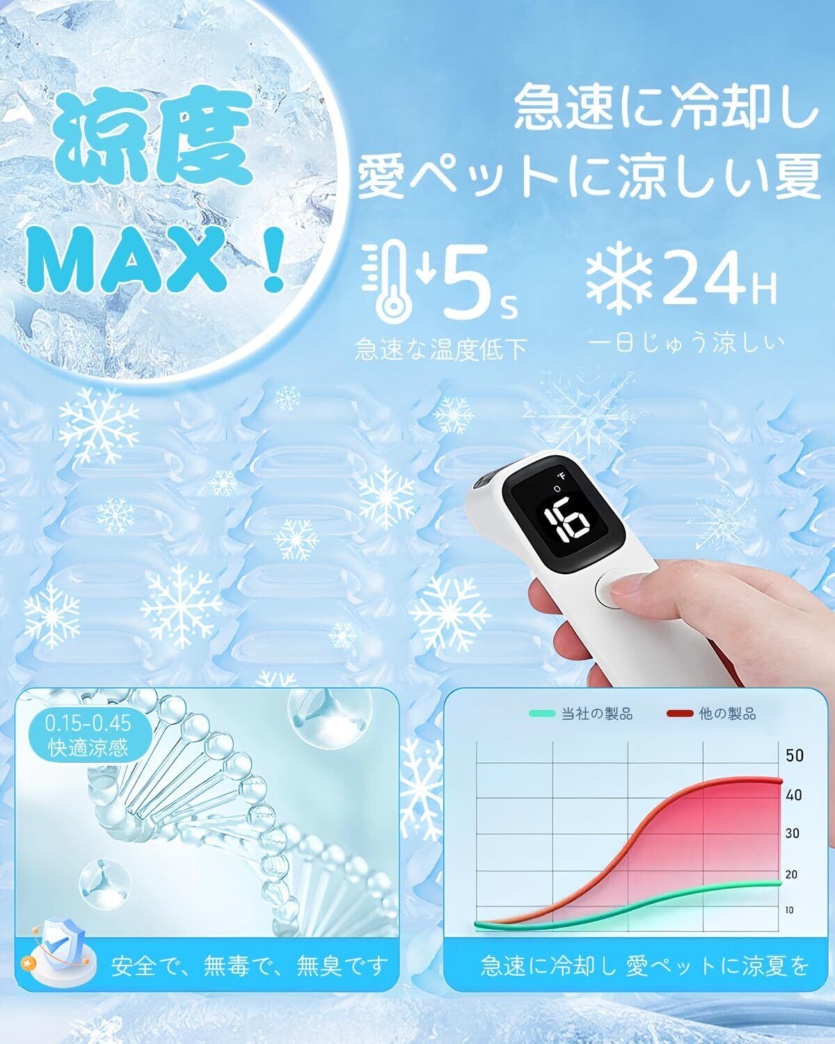 究極の冷感体験:業界初高密度固体ひんやりゲルを採用し、3 秒で素早く降温!触れた瞬間に の強烈な涼感をもたらします。従来の氷涼マットと比べて冷却効果が 3 倍以上アップし、猛暑の中でも愛ペットを快適に保ちます。
