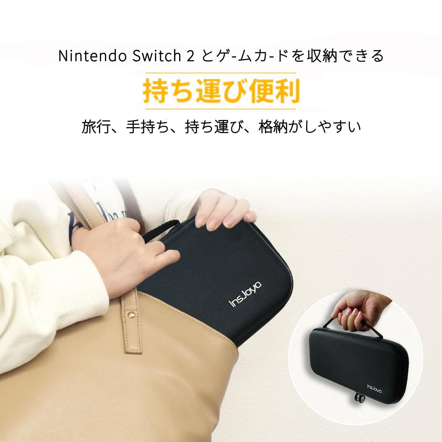 InsJoyo 【Switch 2 ケース+ガラスフィルム2枚】収納バッグ 保護ケース 薄型デザイン スイッチ2 ハードシェルケース キャリングケース カバー 収納ボックス ゲームカード12枚収納 小物収納可 大容量 全面保護 耐衝撃 傷つけ防止 防水防塵 持ち運び便利 対応 Switch2 (2025)本体とアクセサリー
