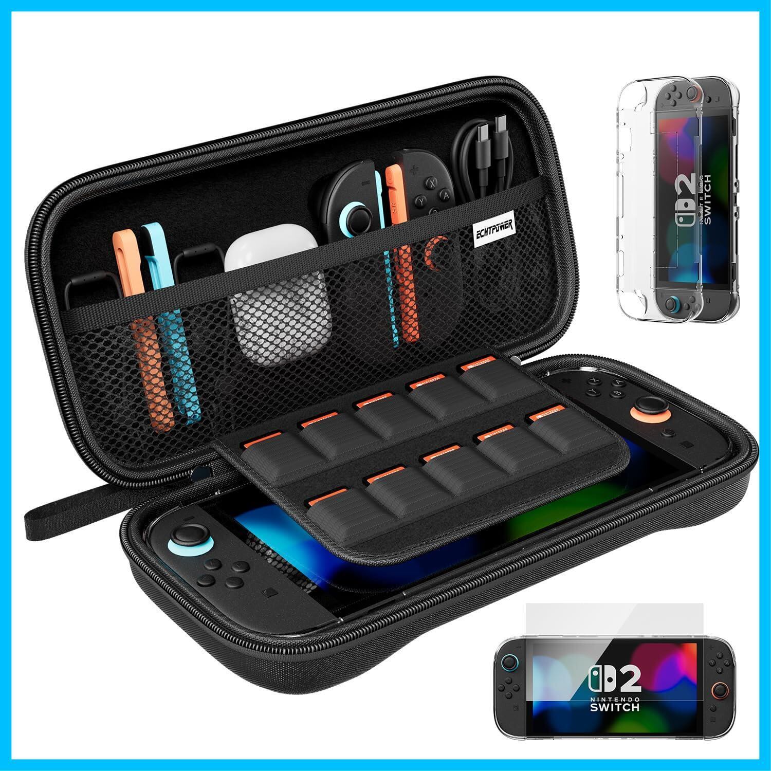 Switch 2 収納ケース キャリングケース 収納バッグ ナイロン素材 ソフトライニング 防塵 耐衝撃 外出/旅行用 持ち運び便利 保護カバー付き ガラスフィルム2枚入り