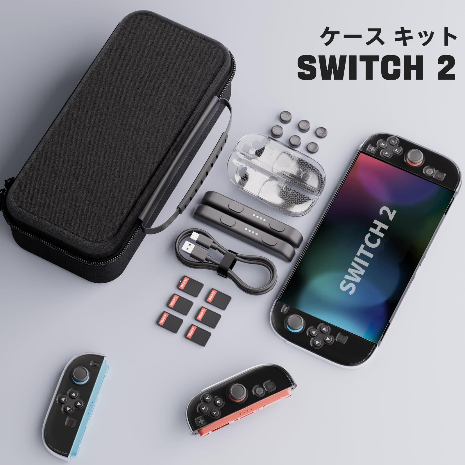 Switch 2対応 ケースHEYSTOP スイッチ 2 バッグセットEVA素材(収納バッグ*1+TPUカバー*1+ガラスフィルム +親指キャップ) Switch 2ケース 強化ガラスフィルム マジックテープ 大容量 耐衝撃 クリア キズ防止 持ち運び便利 防塵 防汚 旅行用 ソフト/ケーブル/イヤホンなど収納可能 ゲームカード収納
