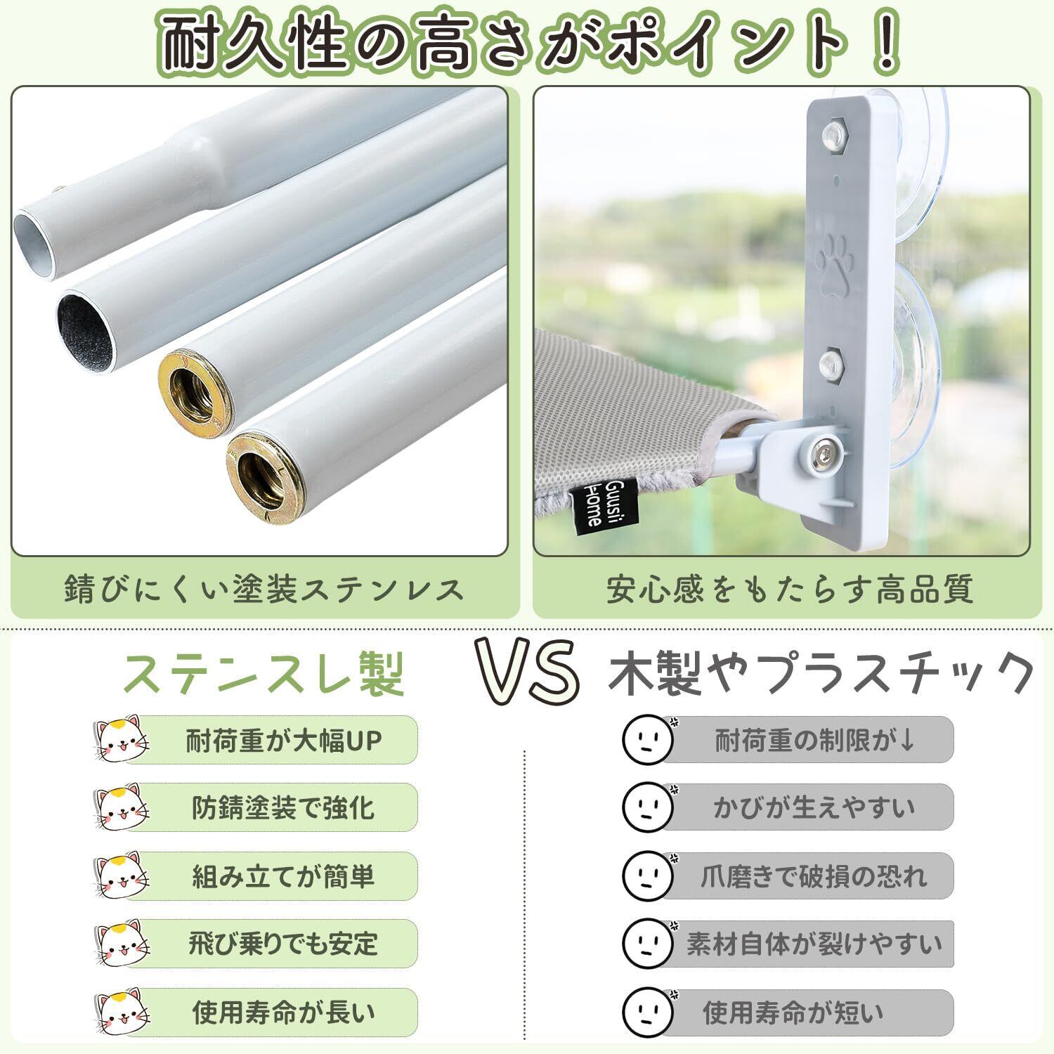 GUUSII HOME 猫窓ベッド ねこベッド 猫ハンモック 折畳み式猫ハンモック 吸盤 猫窓用ハンモック 猫窓ベッド 窓ハンモック 猫窓ベッド 吸盤式 ペットベッド ねこ ネコ キャットハンモック キャットマット 窓際マット 通気メッシュ 日光浴 ウィンドウベッド 洗える 猫用 耐荷重約25KG ストレス解消 組立簡単 日本語説明書付き 90日 (グレー(ラビットボア), M)