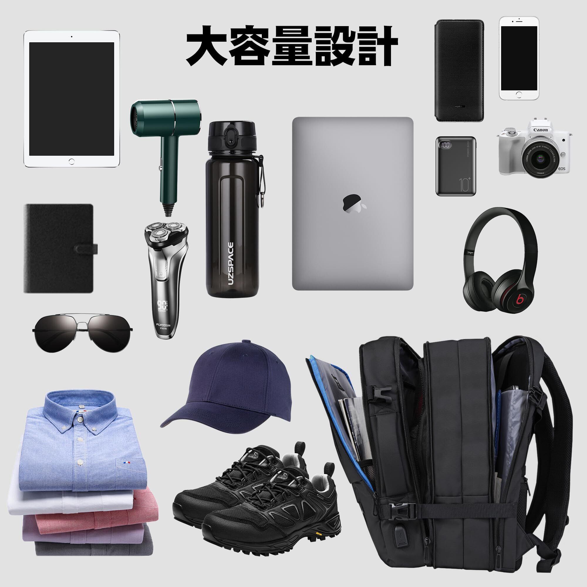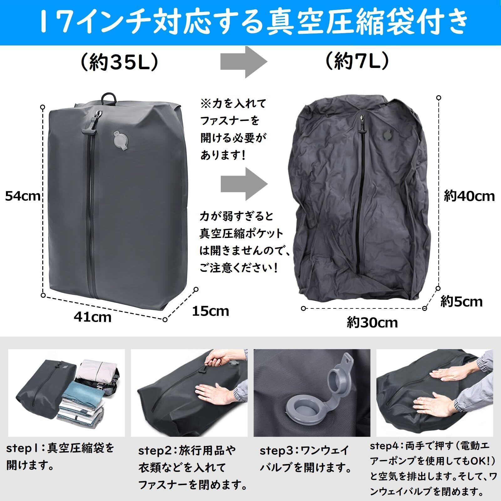 [lovvento] リュック 圧縮袋付き 電動ポンプ付き大容量 メンズ 17インチPC対応 拡張可能 3層構造 防水 キャリーオン機能 USBボート付き 4way サイドハンドル付き キーホルダー付き ビジネス 旅行 通勤 出張 18ポケット 20L~35L