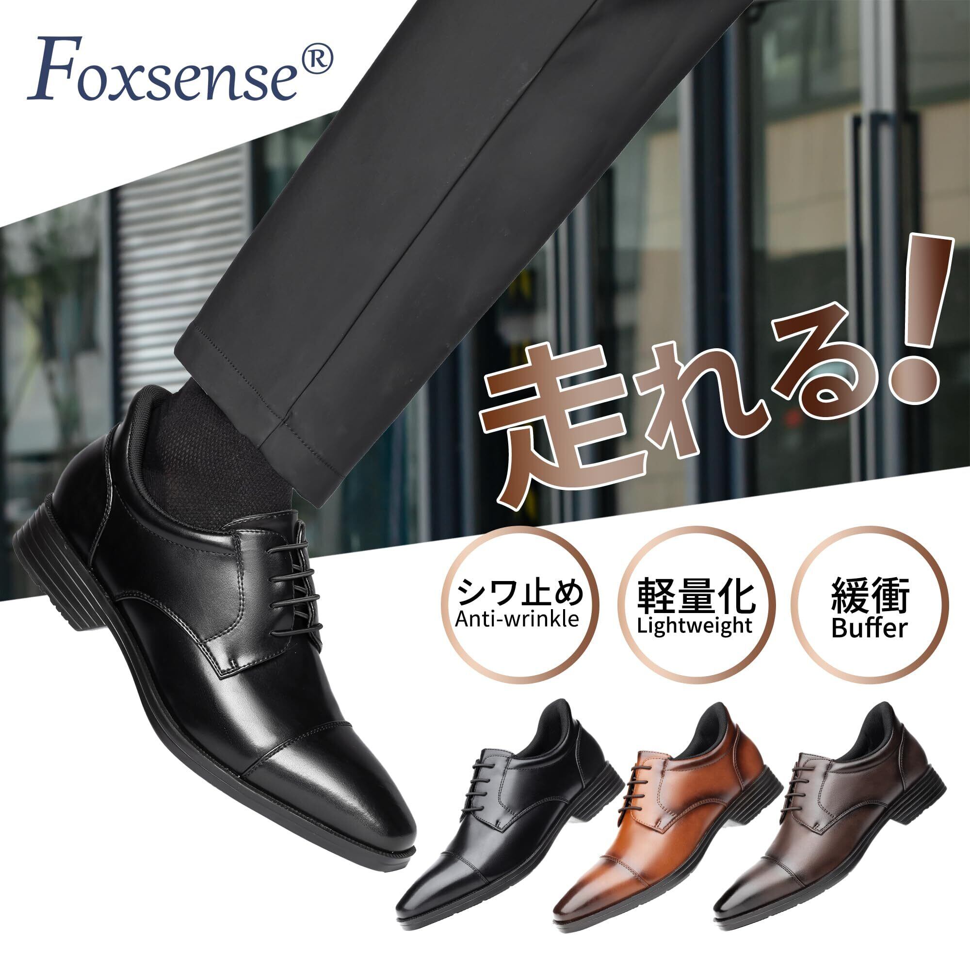 [フォクスセンス] ビジネスシューズ 【立ったままスッと履ける】 革靴 メンズ 走れる ドレスシューズ 本革 ウォーキング ストレートチップ スニーカー 通気性 紳士靴 歩きやすい 防滑 外羽根 軽量 防水 高級レザー フォーマル