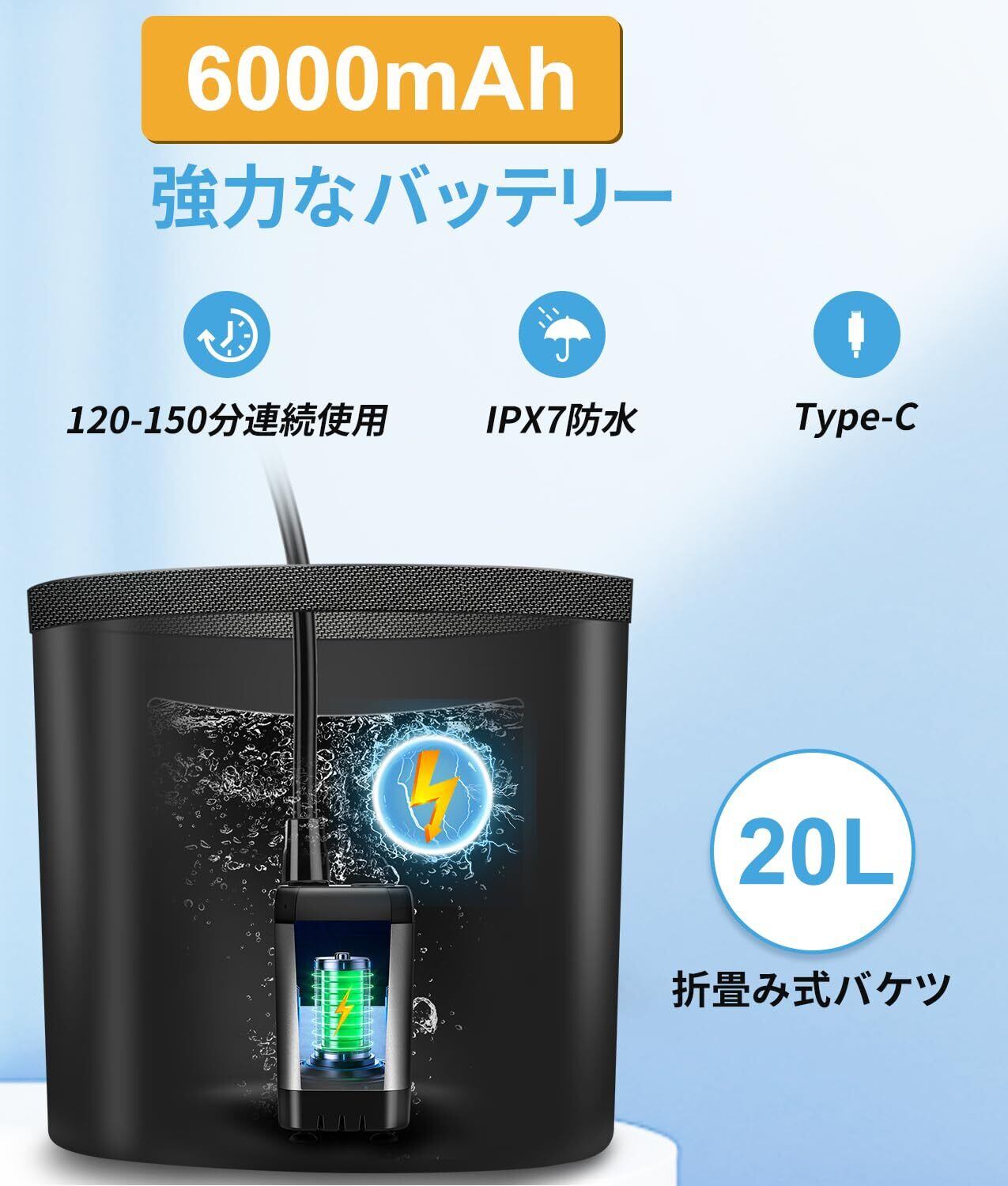 PAHTTO ポータブルシャワー アウトドア 携帯シャワー 20L折りたたみ式バケツ付き 直射ヘッド付き USB充電式 簡易シャワー デジタル画面 水流量調節可 シャワー ポンプ 海水浴 サーフィン 旅行 水遣り 洗車 防災 植物潅水 | Lulu