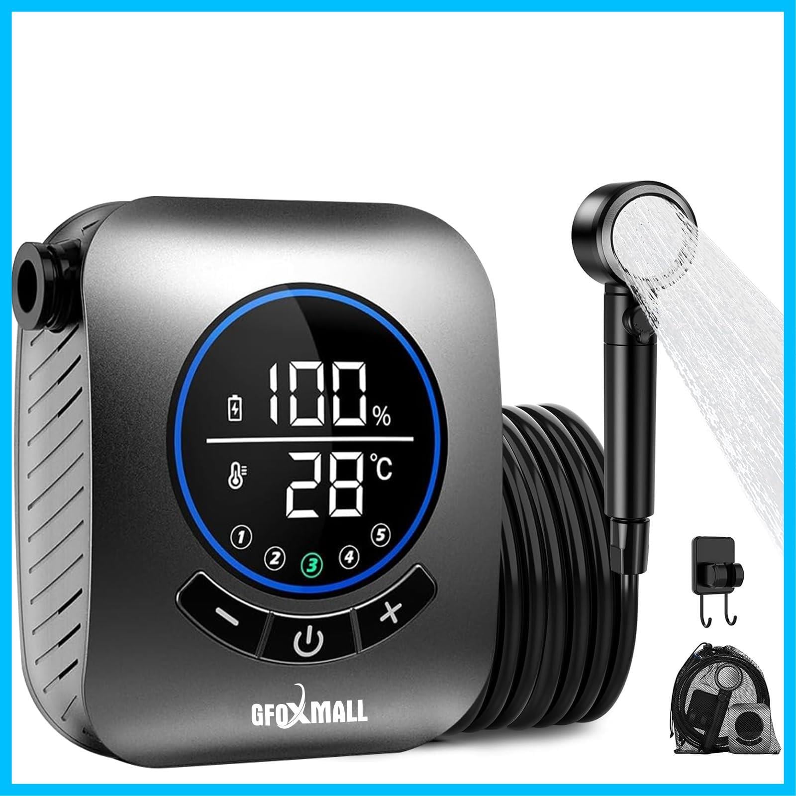Gfoxmall ポータブルシャワー 8000mah大容量 長持ち運転180分間 水圧強い&調整可能 15段階水量調整 アウトドアシャワー 携帯シャワー USB充電式 IPX8防水 節水 静音 コンパクト アウトドア キャンプ 車中泊 防災 グッズ ペット 海水浴 サーフィン 植物潅水 洗車 簡易シャワー | Lulu