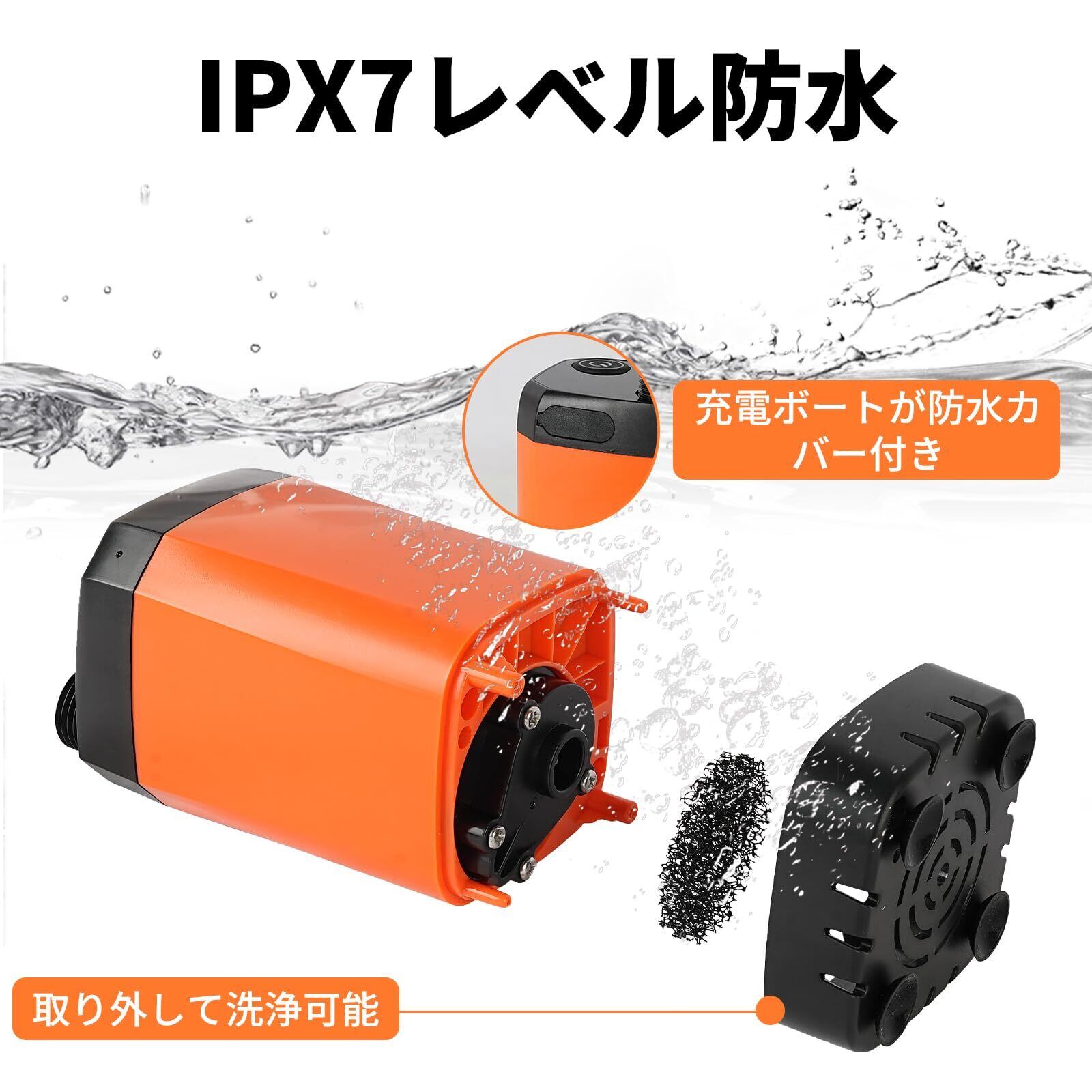 【使用シーン】シャワーヘッドと組み、海水浴などアウトドアの簡易シャワーを楽しみでき、海や砂地や災害などで汚れた後のシャワー利用にも最適です。スプレイガンと組み、洗車や水やりにも対応、コスパ最高なポータブルシャワーですね。IPX7レベル防水性、ポンプを水に沈んでもOK。PSE認証済で、ご安心使用いただけます。