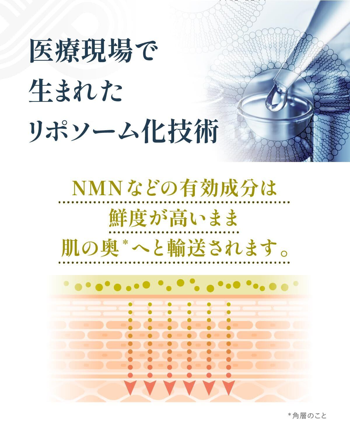 NMN、ヒト幹細胞培養液、機能性ペプチドをリポソーム化