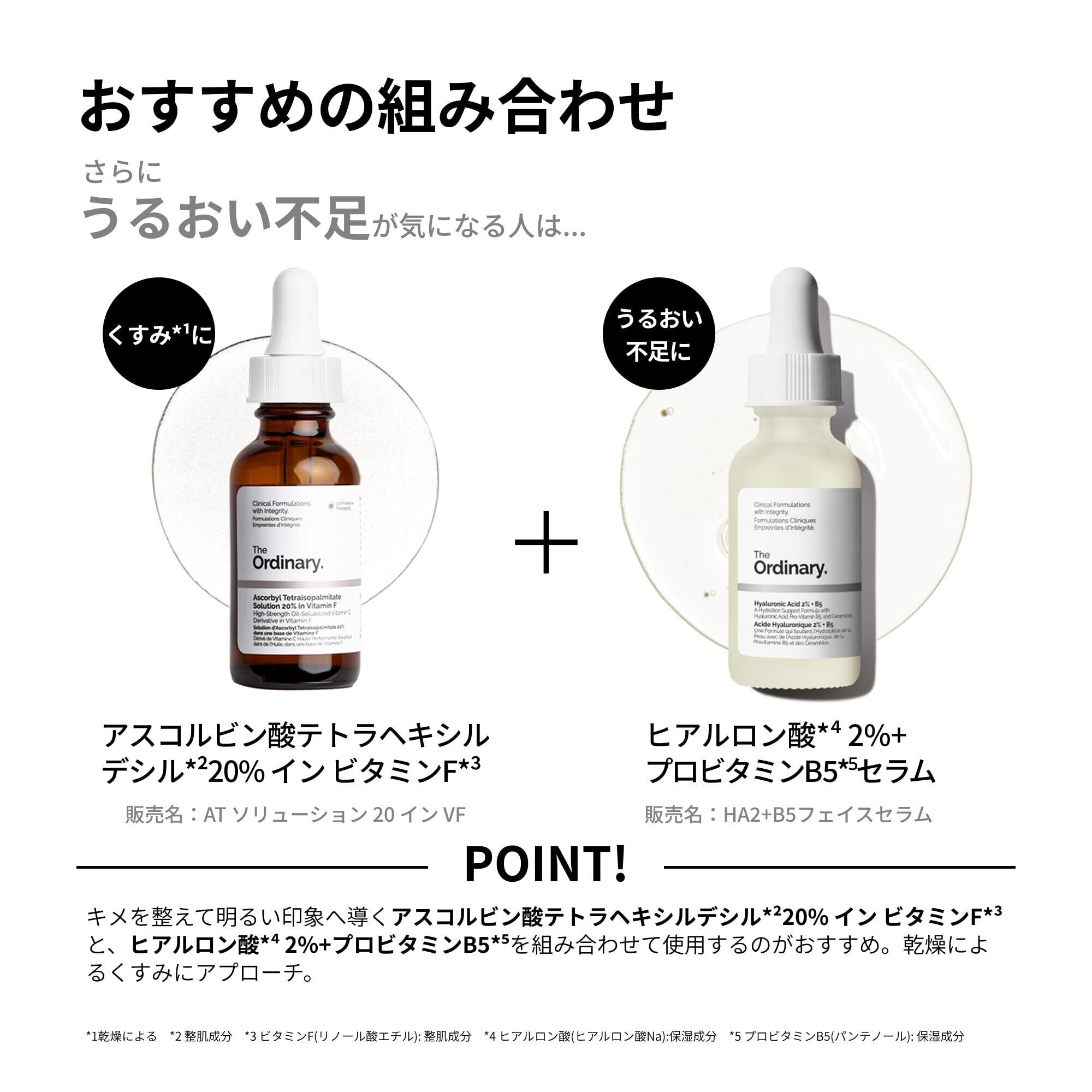 【@cosmeブランド新人賞受賞】 The Ordinary(オーディナリー) アスコルビン酸テトラヘキシルデシル*1 20% イン ビタミンF*2 (AT ソリューション 20 イン VF) 30mL 美容液 スキンケア ビタミンC誘導体 ビタミンF オイル ブライトニング エイジングサイン くすみ 色ムラ 乾燥肌 【公式・正規品】 | Lulu