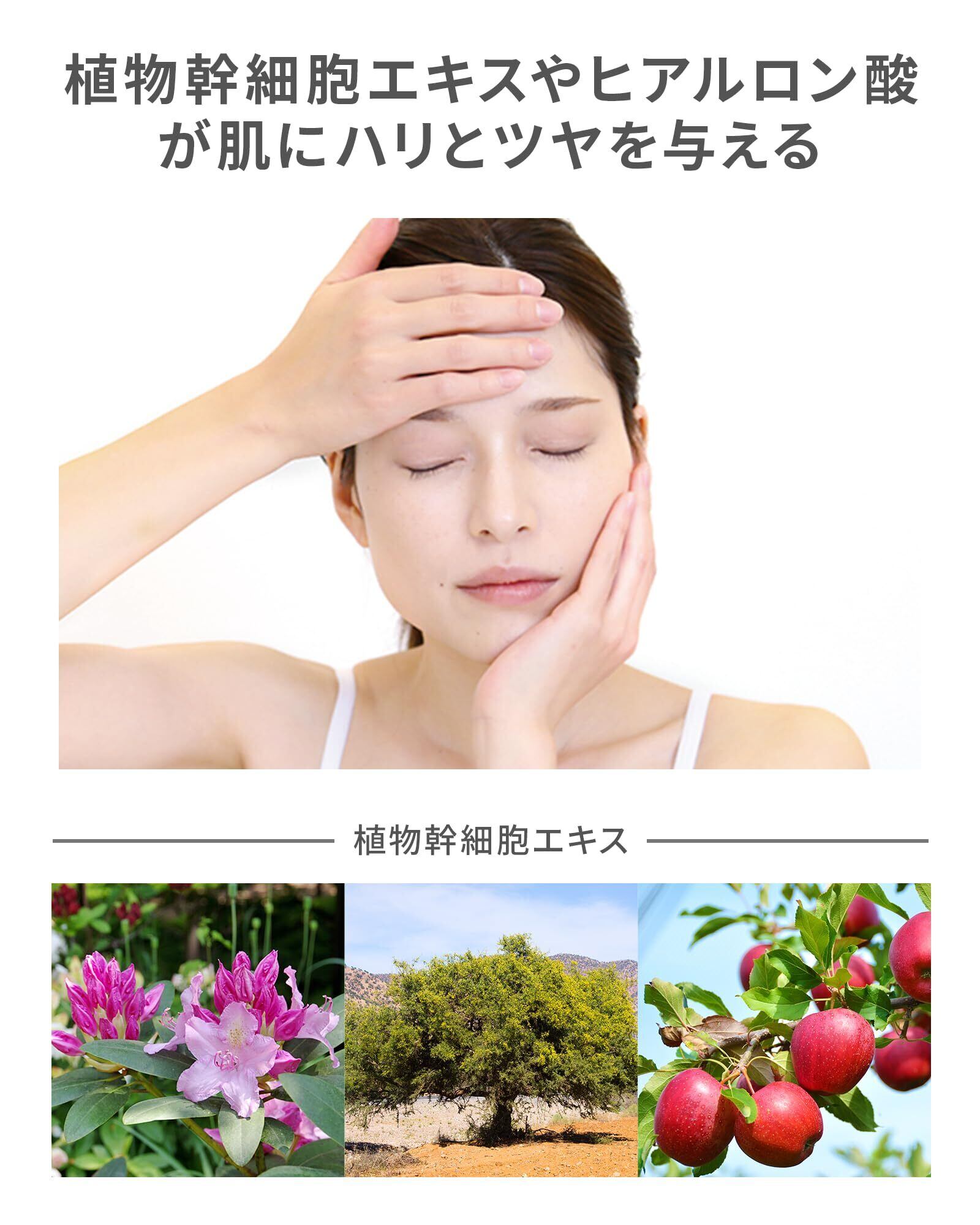 ✨5種の植物幹細胞エキスやヒアルロン酸、4種のヒト型セラミドやカイコまゆエキスが、乾燥やたるみが気になる肌を潤してハリを与え、バリア機能を整える美容液。
