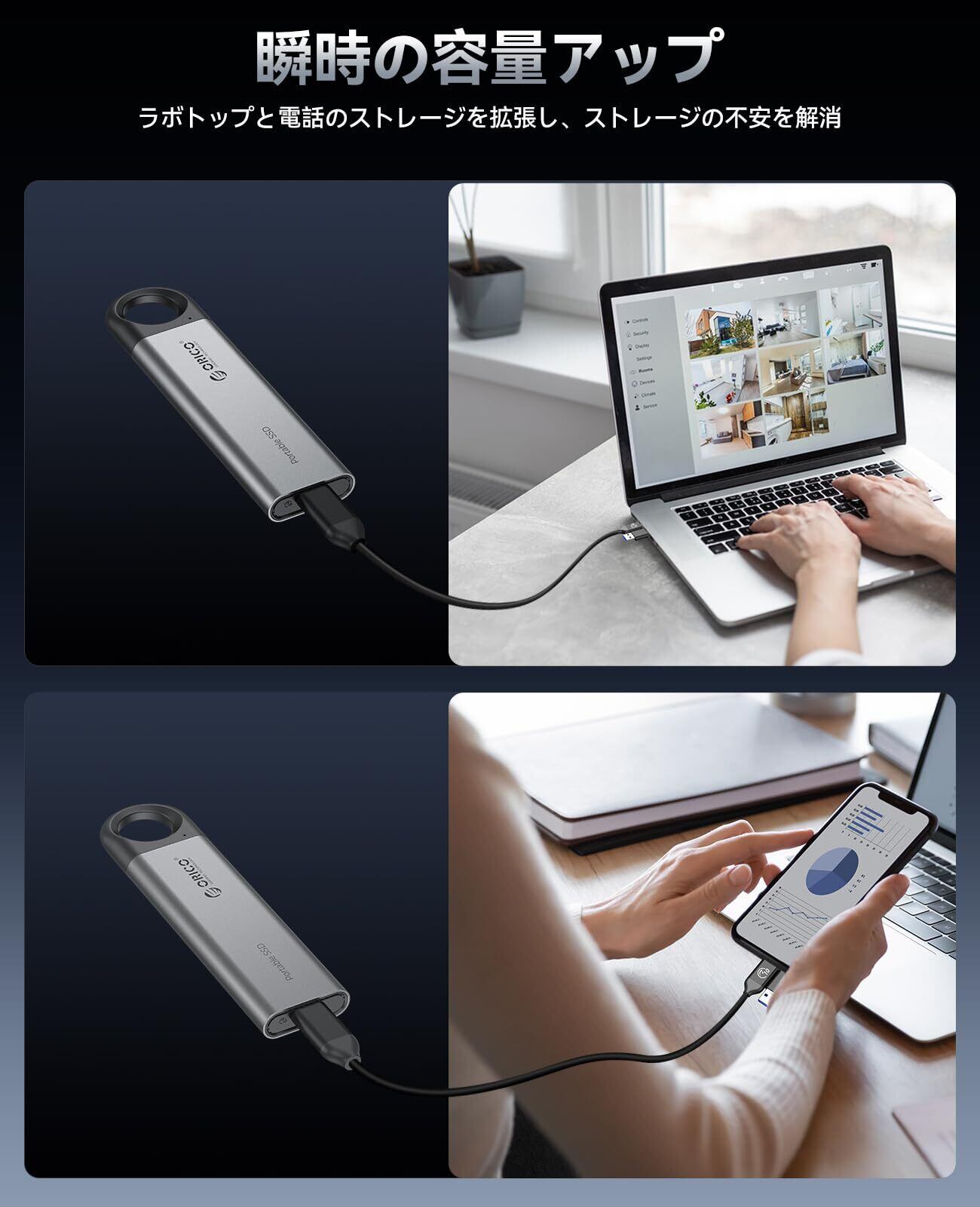 ORICO 1 TB外付SSD 最大1050 MB/秒、2 in 1 USB C & Aケーブル付き、Type-Cスマートフォン、タブレット、ノートブック用高信頼性ストレージ - C10