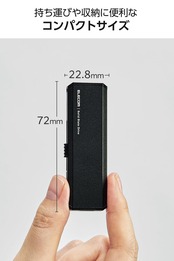 USB-AとUSB Type-Cが一体でありながら、重さ約16g、幅72.0mm×奥行22.8mm×高さ8.8mmというコンパクトさで、持ち運びや収納にも便利なUSBメモリサイズです。