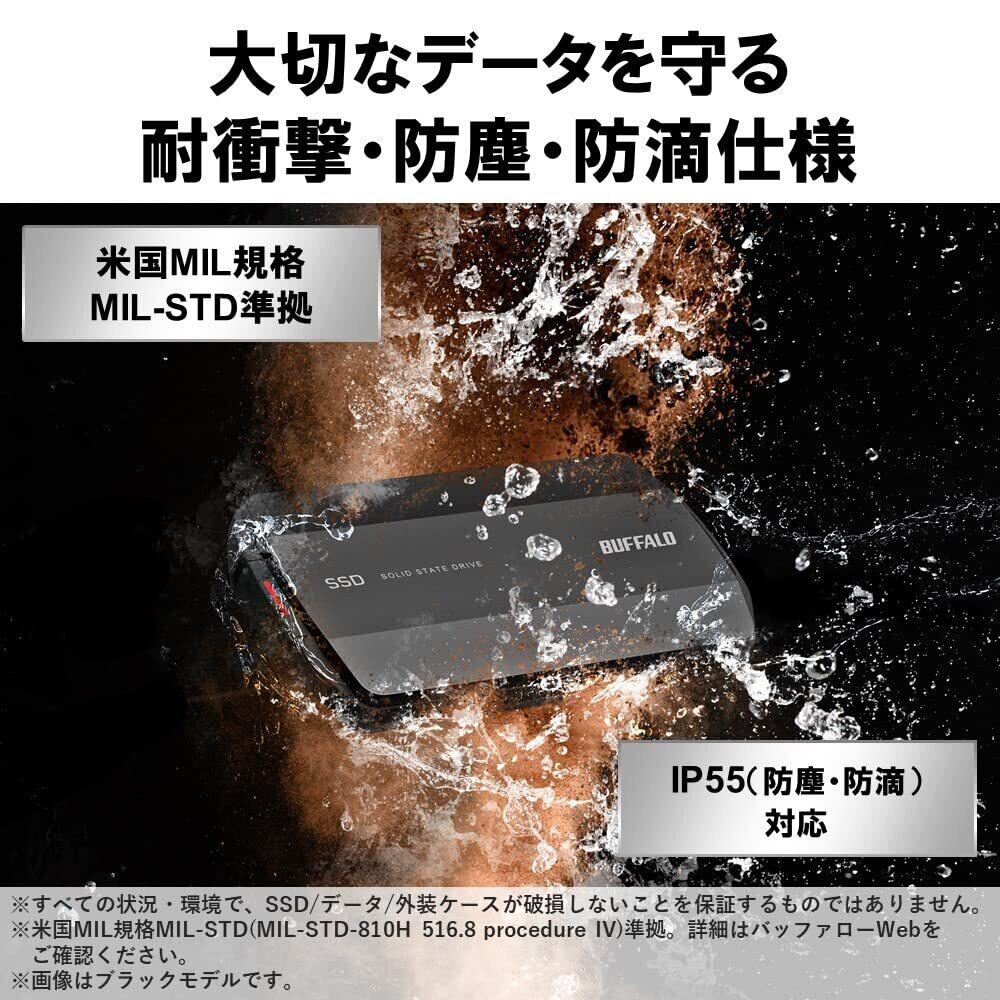 【限定】バッファロー SSD 外付け 1TB USB3.2 Gen2 Type‐C 最大読出速度1050MB/秒 防塵防滴 IP55 耐衝撃 MIL‐STD ポータブル【 iPhone 15 15Pro Windows MacOS ChromeOS PS4 PS5 メーカー動作確認済み】SSD-PHP1.0U3BA/N