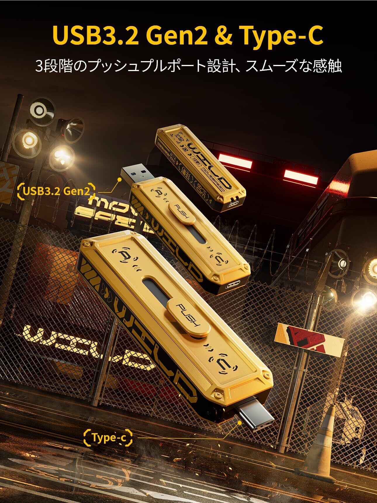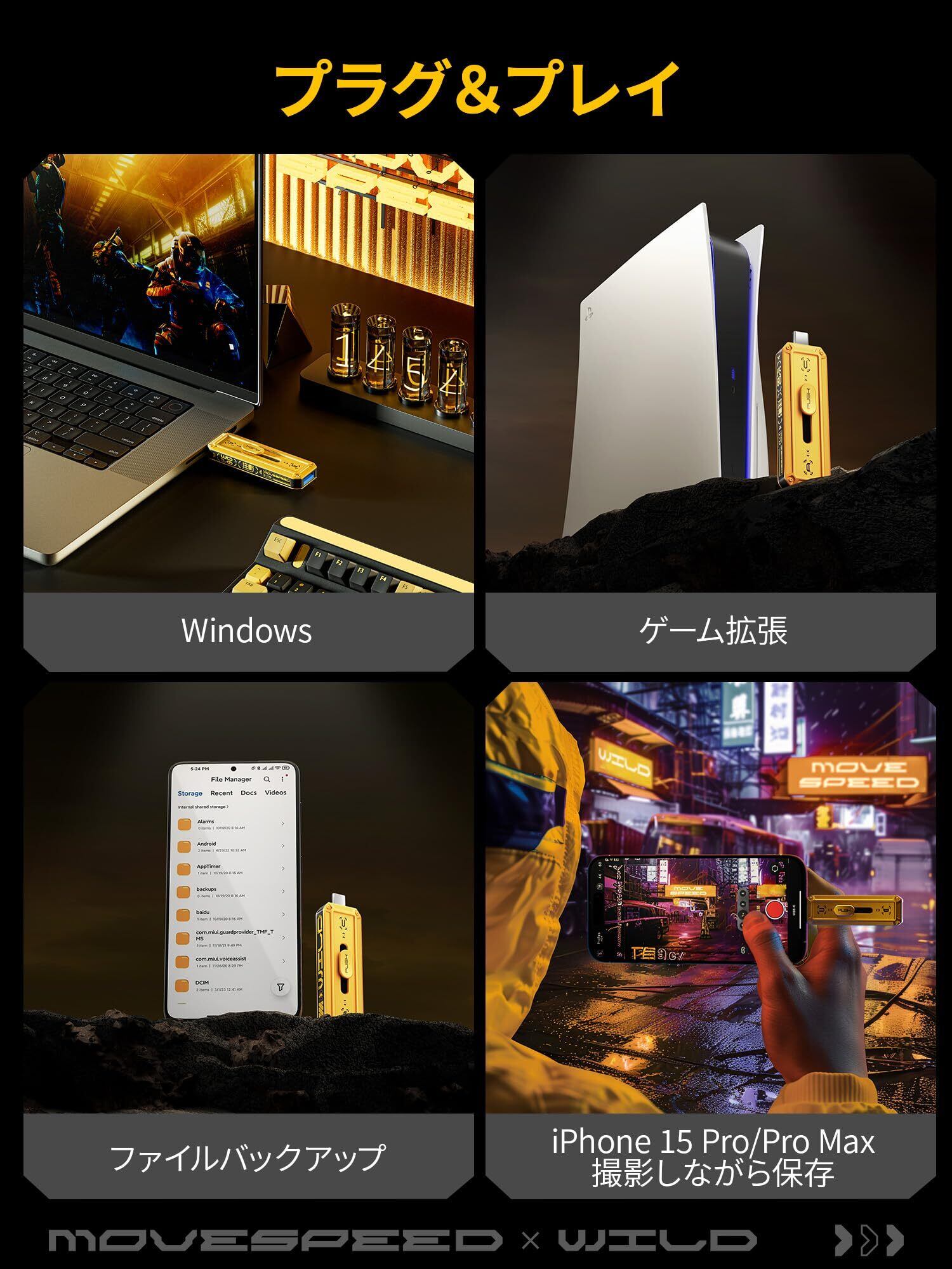 MOVE SPEED SSD 外付け スティック型 最大読込速度1000MB/秒 USB 3.2 Gen2 Type-C対応 USBメモリ 金属筐体 Win/MacBook PS5 iPhone15シリーズ対応 小型 ポータブルssd フラッシュドライブ ストラップ付き (1, TB) | Lulu